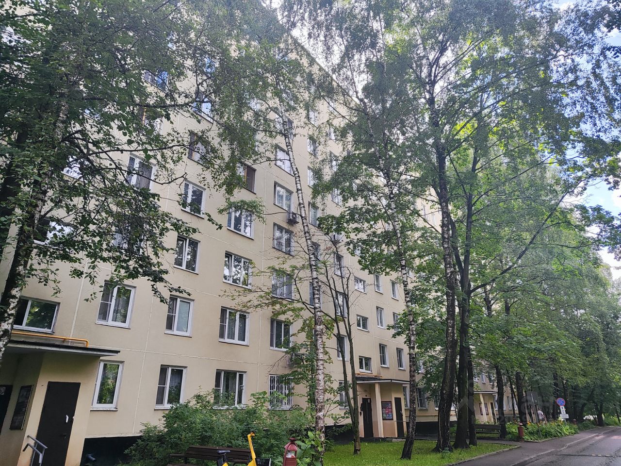 Дом расположен во дворе, окружен зеленью. Очень спокойное и уютное место.