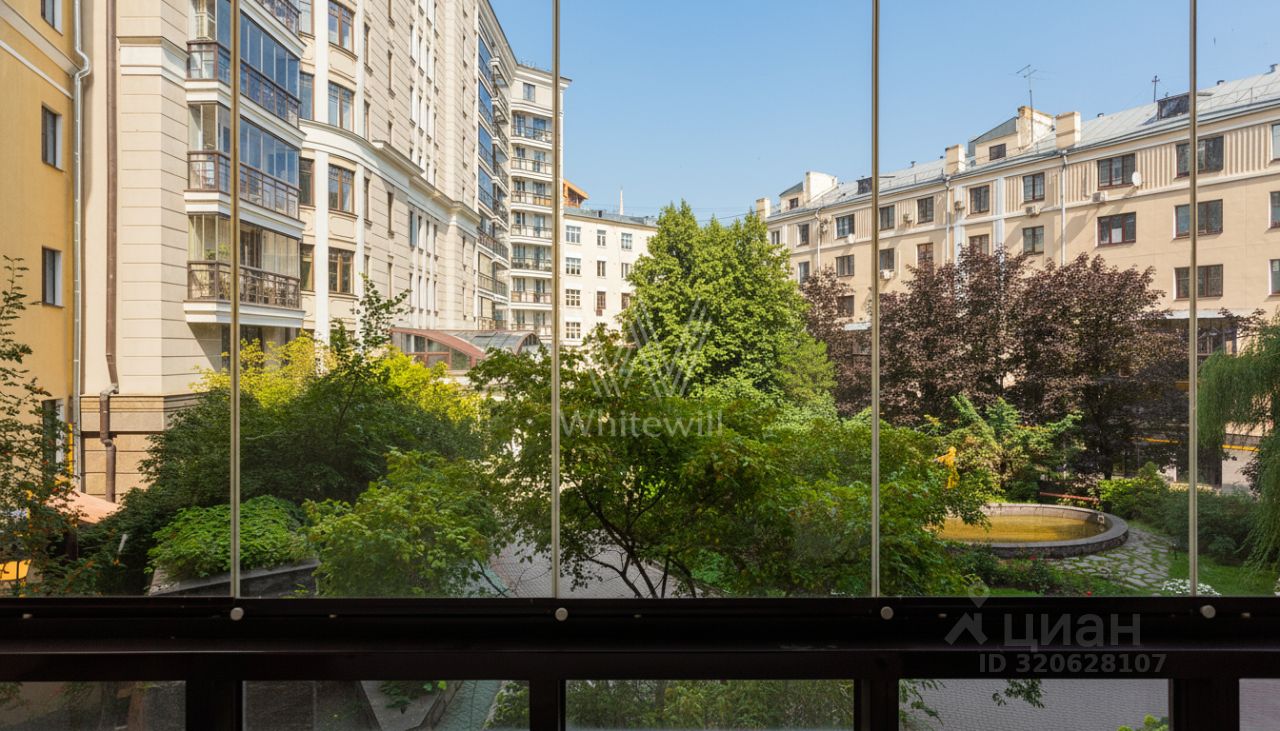 Планировка: просторная гостиная, две спальни, кабинет, три санузла, гардеробная, зимний сад, лоджия. Установлена приточно-вытяжная система вентиляции и кондиционирования. Из окон открывается вид в благоустроенный внутренний двор с фонтаном и на тихую улицу. Машино-место в подземном паркинге.