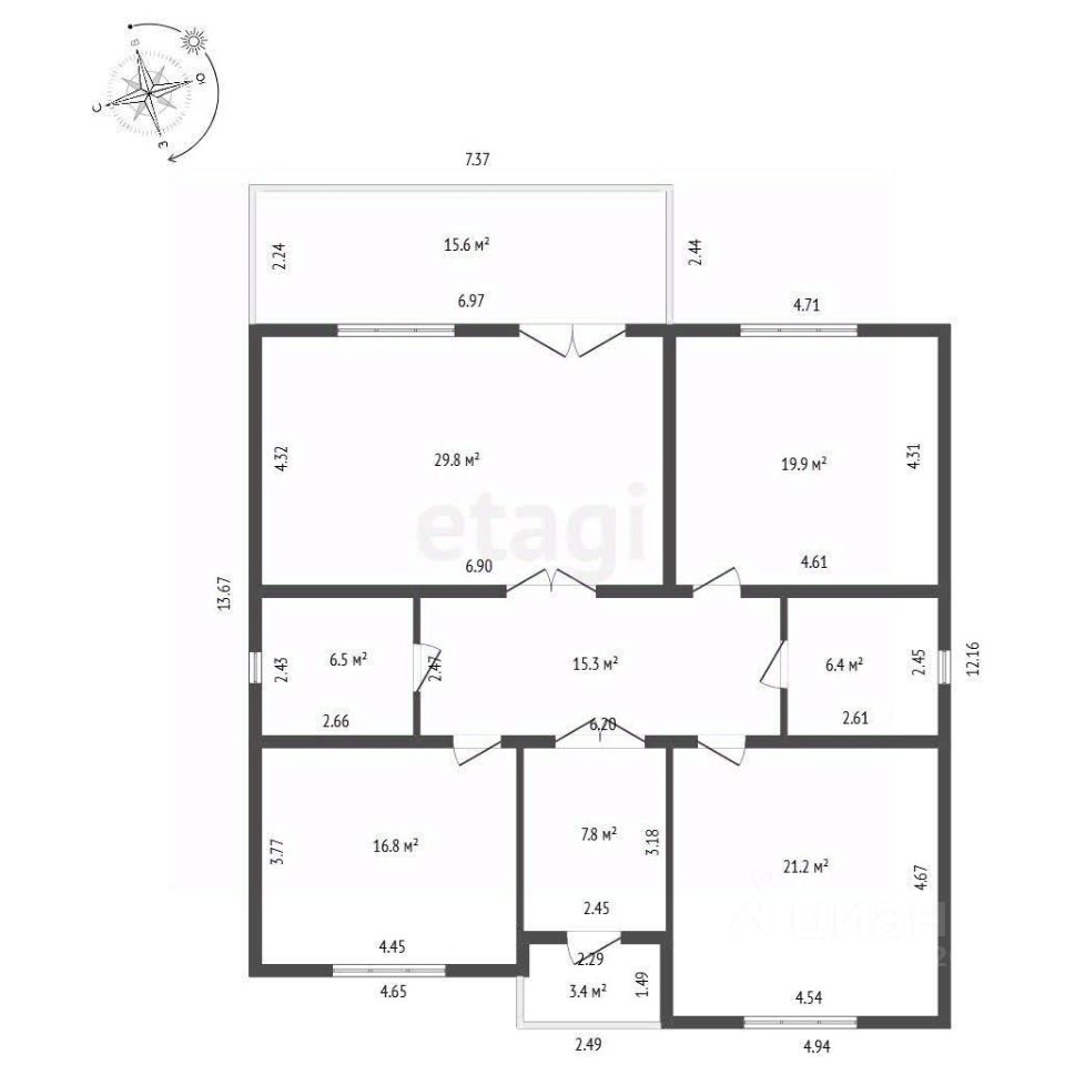 Планировка дома включает в себя просторную кухню-гостиную 30 кв.мс выходом на террасу 10 кв.м, 3 полноценные спальные комнаты 24/21 и 16 кв.м, а также два санузла по 6 кв.м.