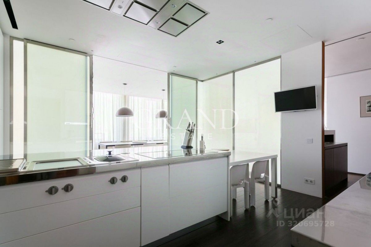 В квартире отдельно обустроена зона для персонала, которая включает в себя: большую рабочую кухню и постирочную, 2 спальни и отдельный с/у, подсобную и серверную комнаты.