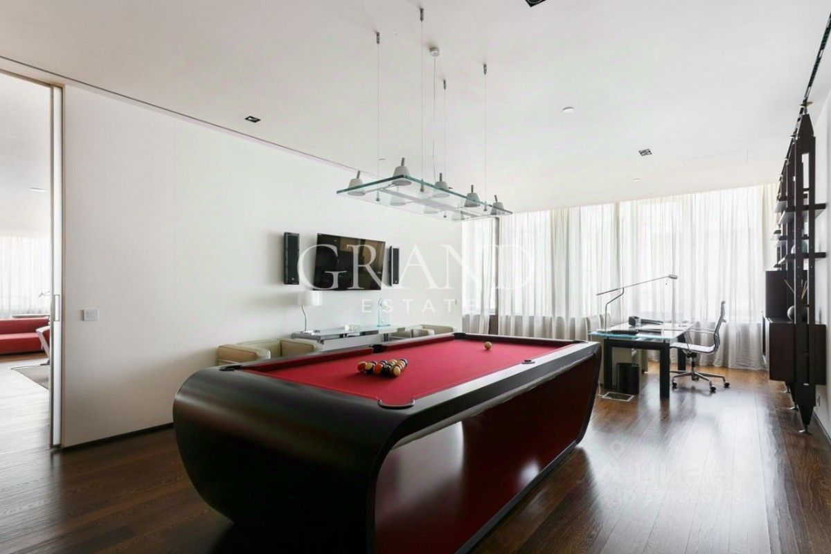 Планировочное решение ДЛЯ БОЛЬШОЙ СЕМЬИ: гостиная, столовая, с выделенной зоной бара, кухня со встроенной бытовой техникой Gaggenau, кабинет-бильярдная, мастер-спальня с гардеробной и ванной, 3 спальни, 2 ванные комнаты, гардеробная и гостевой с/у.