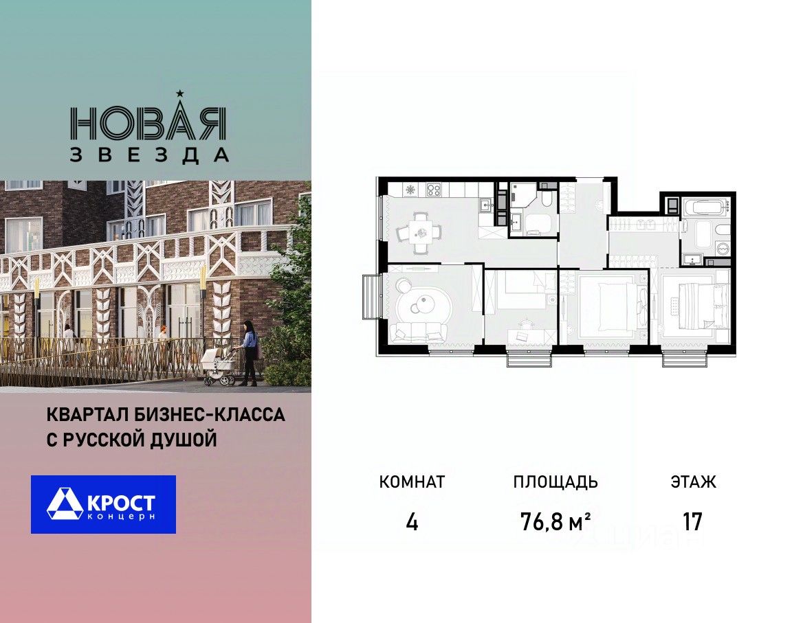 Продаётся 4-к квартира 76.8 кв.м. на 17-м этаже 22 этажного дома, корпус 2 - Резиденция ''Сочи'' . Без отделки. Легендарный квартал ''Новая звезда'' продолжается II очередью, которая спроектирована как мультифункциональный кластер. ЖК ''Новая Звезда'' расположен на территории Новой Москвы, в 10 мин. от м. Теплый стан и в 9 мин. пешком от строящейся станции метро ''Бачуринская''.