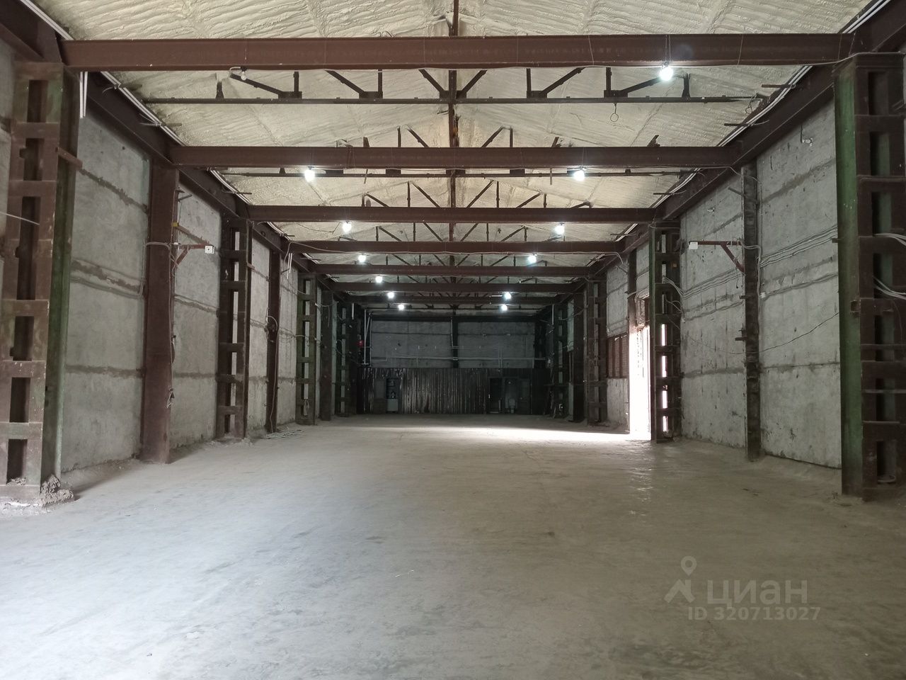 Высота потолка 6 м. Пол - бетон. Вотота с двух сторон 4м./4м. К зданию подведено отопление, водоподведение и канализация, Электрическая мощность 15кВт.(есть возможность увеличить)