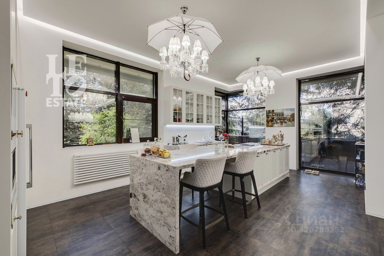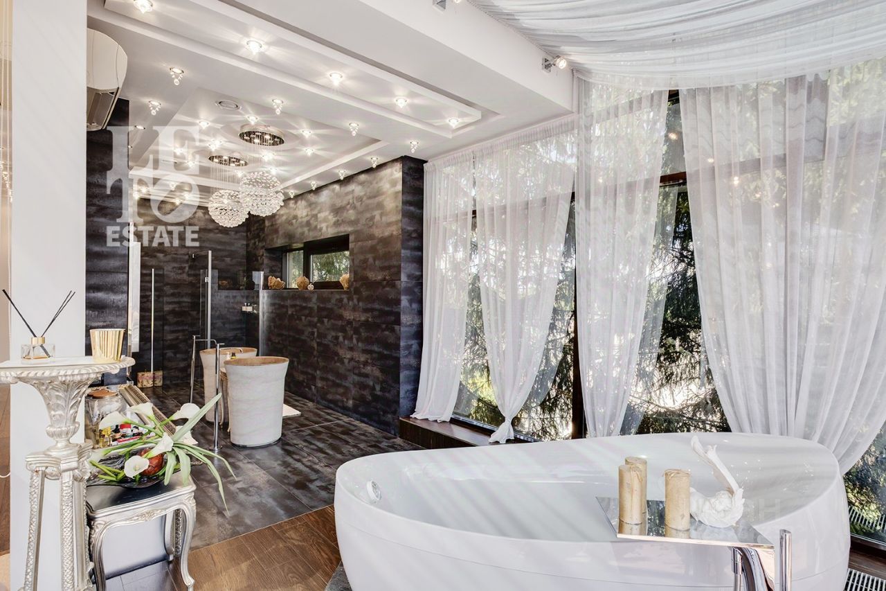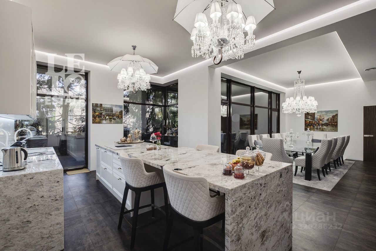 Арт. 112436138 Вашему вниманию представлен загородный дом площадью 950 кв. м на прилесном участке в охраняемом коттеджном поселке ''Десять Ярдов'', расположенном в 5 км от МКАД по Рублево-Успенскому шоссе, рядом с деревней Раздоры. Почувствуйте ритм современности и дыхание леса! Этот дом воплощение стиля: смелая архитектура встречается с просторным участком, прилегающим к лесу. Идея для мечтателей: оформите прилегающий лес в аренду ваше личное царство тишины и покоя! Солнце через гигантские окна заливает каждый уголок теплом и светом, наполняя пространство воздухом и открывая живописные виды, меняющиеся как картины в галерее. Жизнь в потоке света и природы! В доме выполнен дизайнерский современный ремонт, использованы исключительно европейские дорогостоящие материалы, кухня полностью оснащена техникой Kuppersbuch, встроенная и мягкая мебель от ведущих мировых производителей. Имеется канальное кондиционирование по всему дому, а также индивидуальное кондиционирование в каждой комнате - решение, которое позволяет создать свой уникальный климат. Первый этаж имеет уникальную спа-зону: бассейн с противотоком 11.5м х 4.5м, сауна и зоны отдыха. В цокольном этаже расположились несколько досуговых решений: отдельный зал с кинотеатром, оснащенный техникой Bowers&Wilkins, игровая комната с игральными столами и бильярдом, а также отдельное помещение с мини-тренажерным залом. В доме все центральные коммуникации: газоснабжение, электричество, водопровод, канализация. Оборудована котельная, установлено дорогостоящее оборудование De Dietrich. Полная автоматизация управления (освещение, климат) на базе премиальных интегрированных систем. На территории участка имеется отдельный гостевой двухэтажный дом площадью 250 кв. м с гаражом на два автомобиля. Данный дом полностью мебелирован, имеет три изолированных апартамента и полностью оборудованную кухню. Просторный участок 30 соток ухожен и утопает в зелени: украшением и гордостью являются красные клены, привезенные из Германии. Участок прилегает к Серебряноборскому лесничеству, часть лесных земель которого можно взять в аренду.