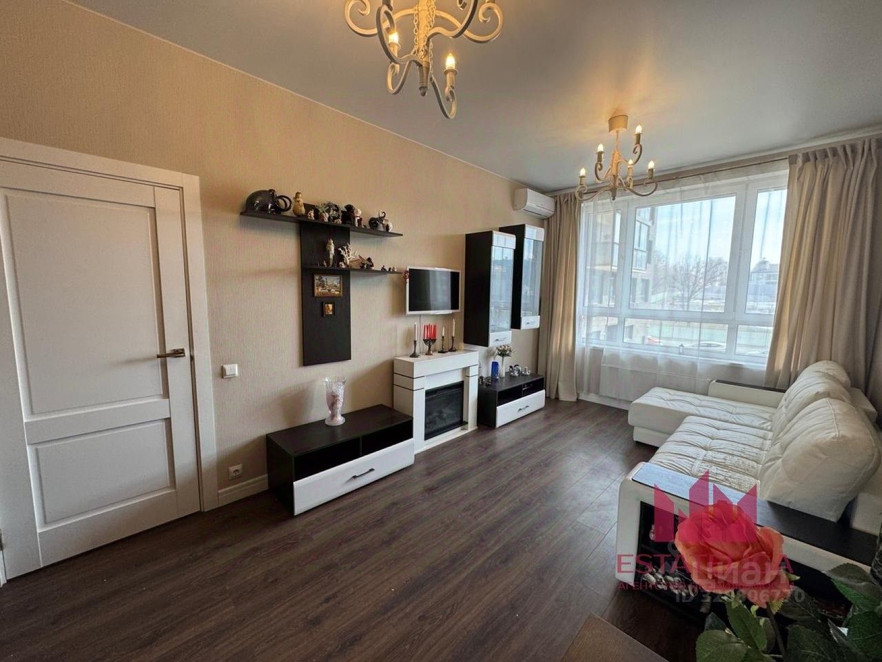 - Просторная гостиная с зоной отдыха и рабочим местом. - Комната — идеально под детскую или спальню. - Кухня с удобной рабочей зоной, встроенной кухонной мебелью и техникой .