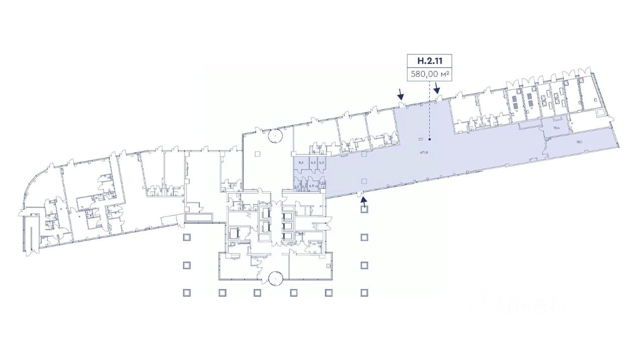 Продается помещение свободного назначения 580 кв.м. в МФК бизнес-класса МИРАПОЛИС, находящегося на первой линии проспекта Мира. Продажа от Застройщика, без комиссии. Ввод в эксплуатацию - II квартал 2026г. Продажа по ДДУ. Покупка доступна в рассрочку. Возможна льготная ипотека от Дом РФ. ХАРАКТЕРИСТИКИ помещения: - Располагается на 1 этаже в стилобатной части комплекса. - Три отдельных входа с разных сторон, с уровня земли. - Витражное остекление. - Удобное помещение с максимальным полезным пространством. - Выделенная мощность 0,3 квт. - Высота потолков до 5 м. - Мокрые точки. Функциональное назначение - супермаркет, медицинский центр. ПРЕИМУЩЕСТВА: - Первая линия проспекта Мира.