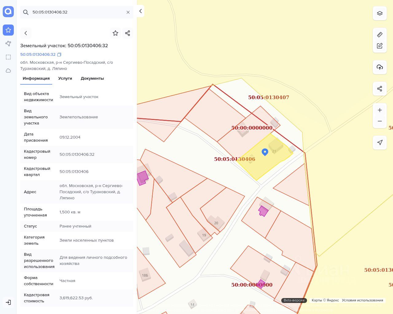 ХАРАКТЕРИСТИКИ УЧАСТКА: Кадастровый номер: 50:05:0130406:32 Площадь 15 соток Участок имеет ПРАВИЛЬНУЮ ПРЯМОУГОЛЬНУЮ ФОРМУ! Категория земель: Земли населенных пунктов Виды разрешенного использования: Для ведения личного подсобного хозяйства Участок огорожен забором
