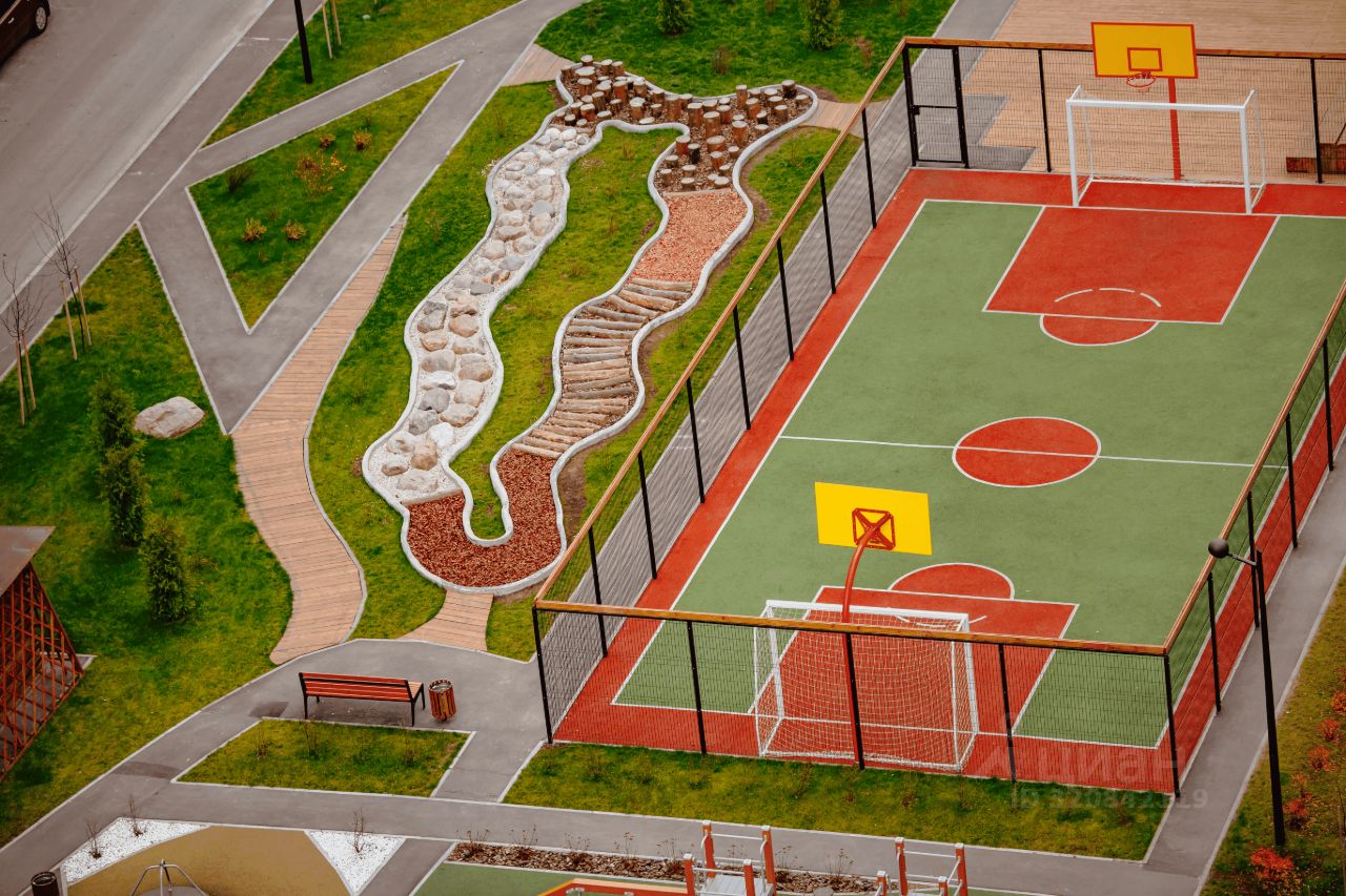 Квартира в эко-квартале комфорт-класса плюс ''Есенинские поля'': • Кирпичный дом с панорамным остеклением с 5 этажа. • Закрытая территория с круглосуточной системой видеонаблюдения. • Рядом ТЦ ''Есенин'' и термальный комплекс ''Новые Термы'' с бассейнами. • Порядок на территории поддерживает собственная управляющая компания. • Умные, развивающие детские площадки и спортзал под открытым небом. • Зелёный двор-парк и лаундж-зоны для отдыха на природе. • Филиал городской поликлиники. • Безбарьерная среда для мам с колясками, пожилых и маломобильных людей: вход с уровня земли, просторный проходной лифт. • Скейт площадка. • Детский сад ''Новые дети''.