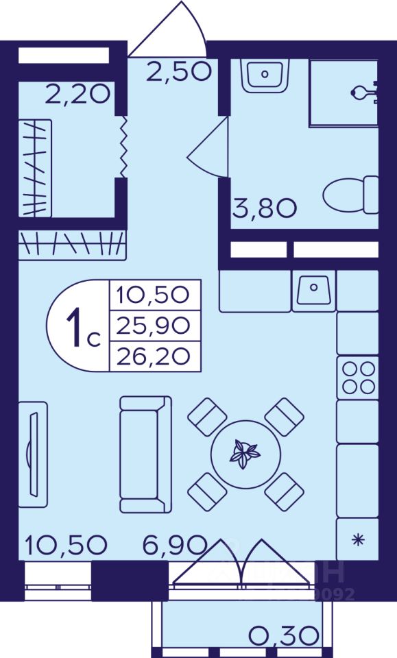 продам 1-к, Железнодорожная 2-я, 4105 384 100 ₽