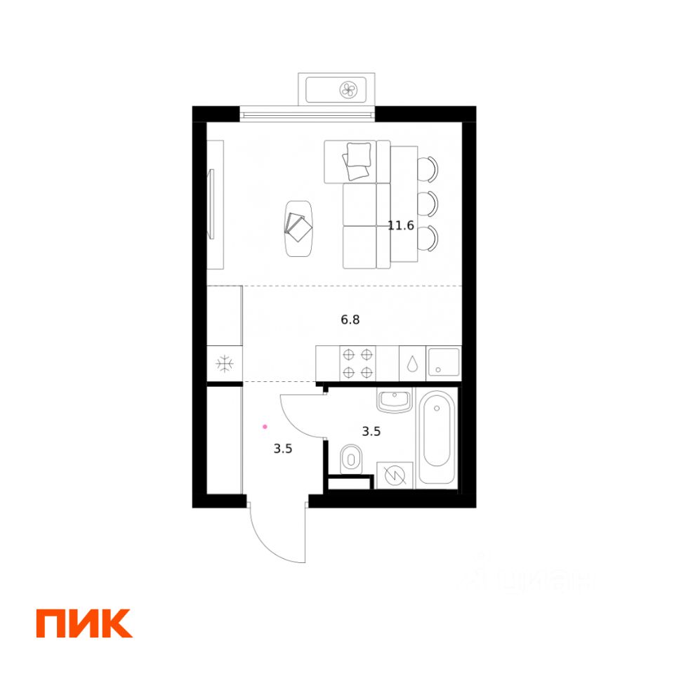 Жилая площадь11,6 м2