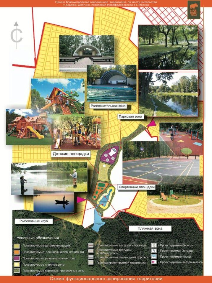 На территории имеется детская и спортивная площадка, зона отдыха, озеро с пляжной зоной.