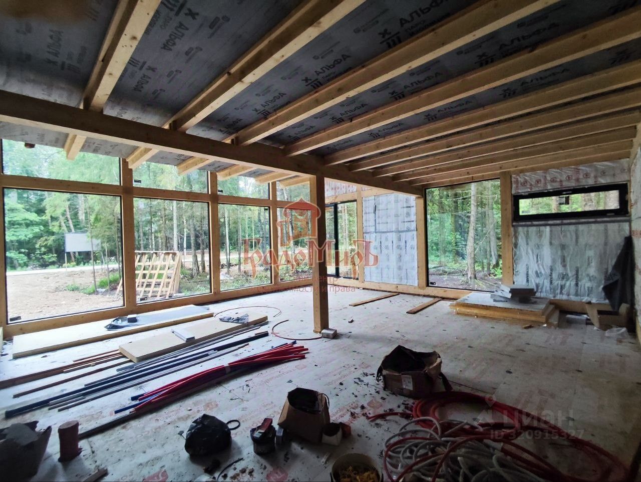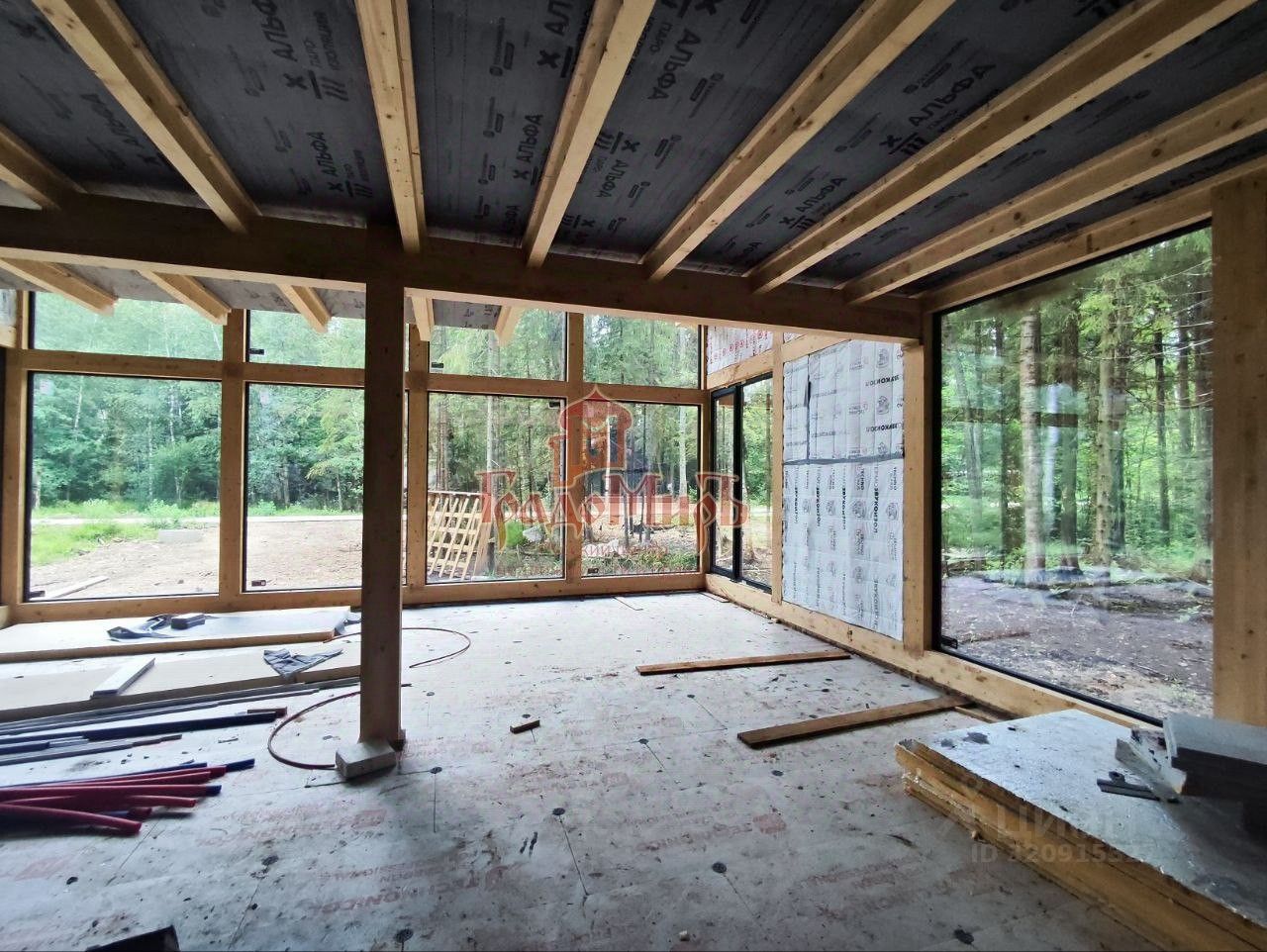 Арт. 110891372 В продаже дом в тёплом контуре (без внутренней отделки) в 45 км от МКАД с завораживающим видом на сосновый лес за окном.