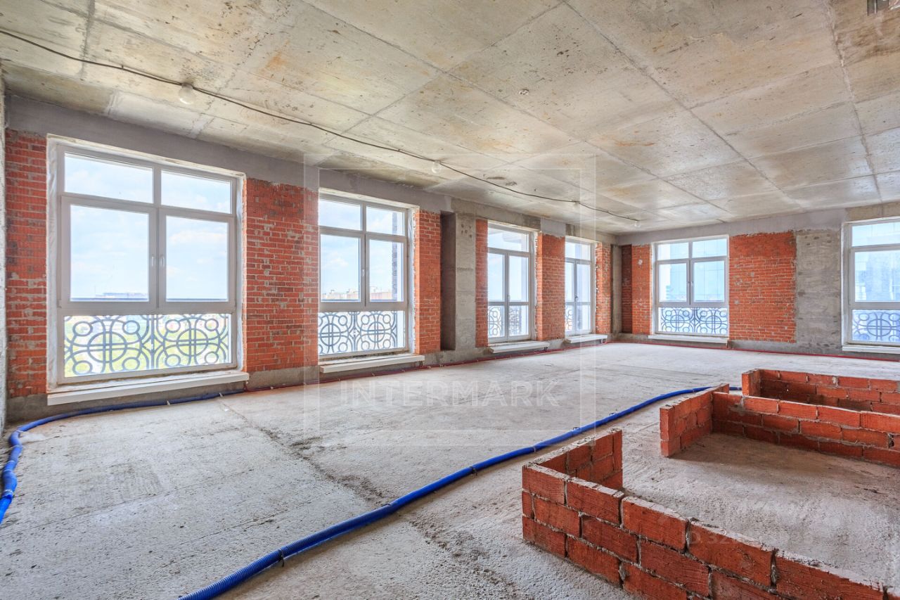 Жилое пространство можно эргономично зонировать и спланировать мастер-спальню с собственной ванной комнатой и гардеробной, двустороннюю кухню-гостиную, детскую спальню/кабинет, дополнительную ванную комнату, холл.