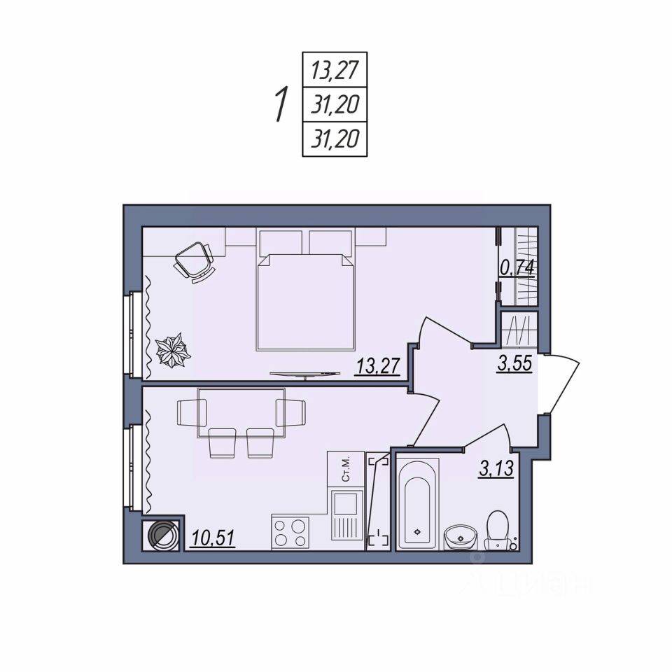 Общая площадь31,2 м2