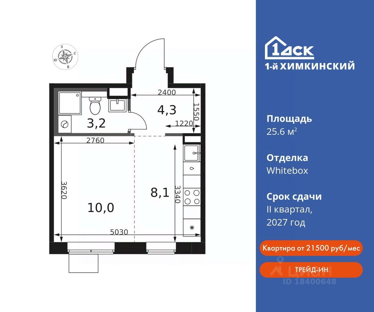 Семейная ипотека без наценки со скидками до 21% до конца августа! Прямая продажа от застройщика! Жилой Комплекс класса Комфорт. Продаётся студия номер 220 общей площадью 25.6 кв.м на 17-м этаже 17 этажного дома. Отделка Whitebox.