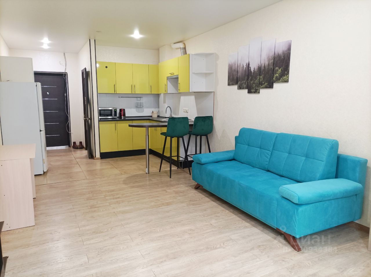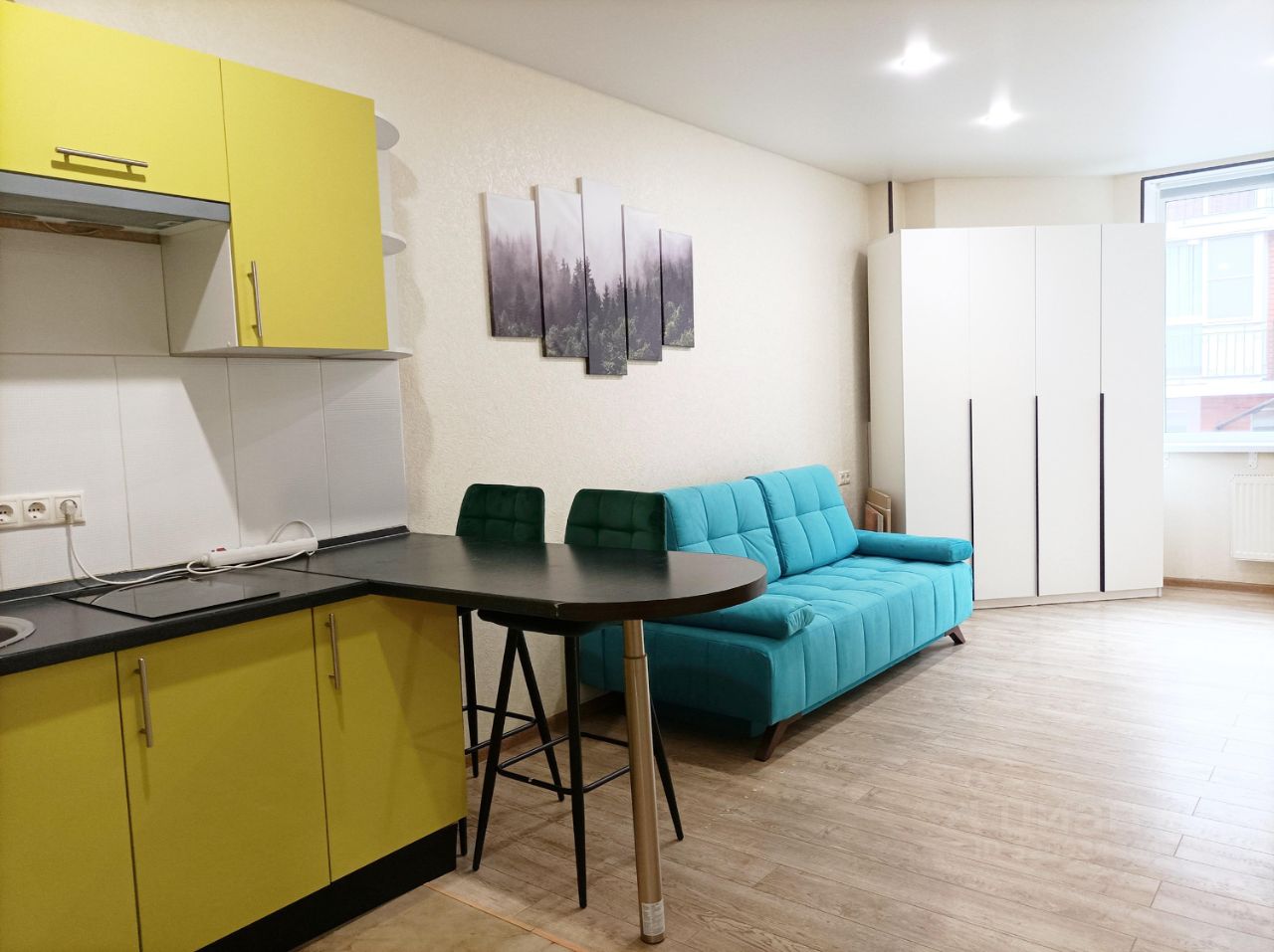 Квартира с косметическим ремонтом, а также полностью меблирована, что дает возможность новому владельцу сразу заехать и жить или сдавать в аренду. Студийная планировка позволяет эффективно использовать пространство. Санузел совмещенный. Окна выходят во двор, поэтому в квартире тихо и уютно.