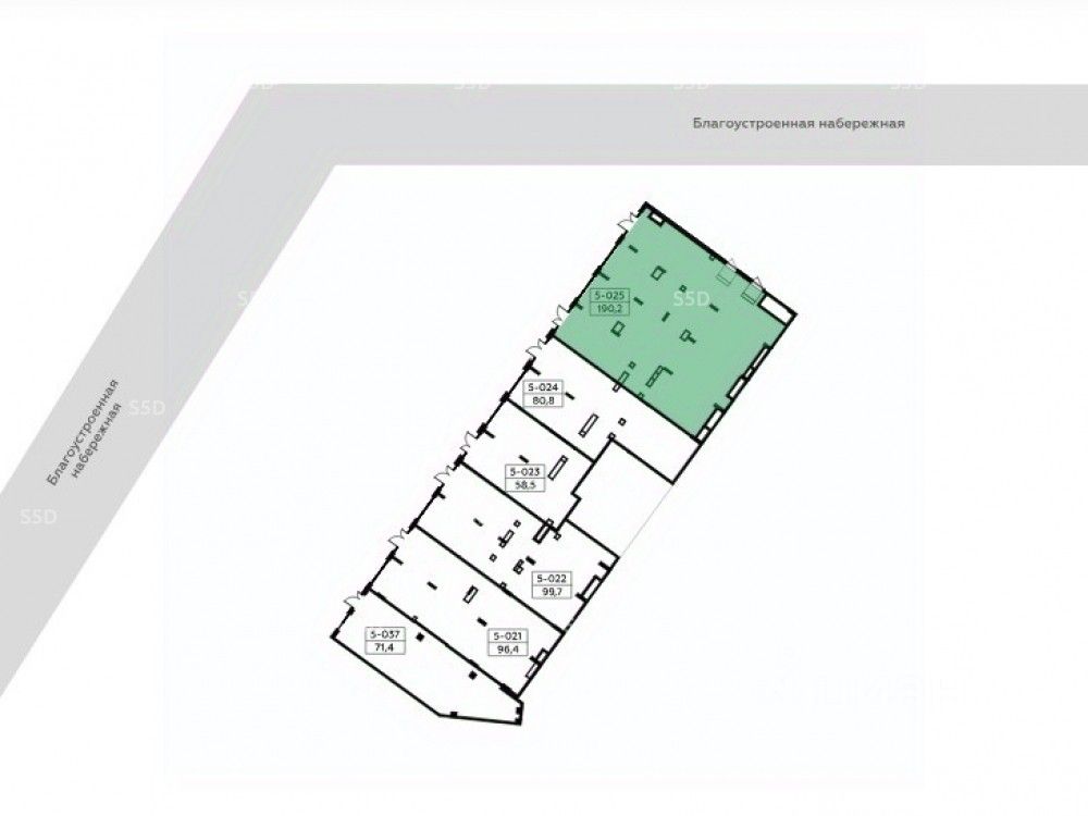 Технические характеристики. Угловое помещение площадью 189,8 кв.м. На 1 этаже 16-ти этажного дома. Дом сдан, заселен. Состояние помещения - Shell Разрешенная электрическая мощность 66,6 кВт. Высота потолков - 4,26 м. Количество входных групп: 4. Планировка свободная.