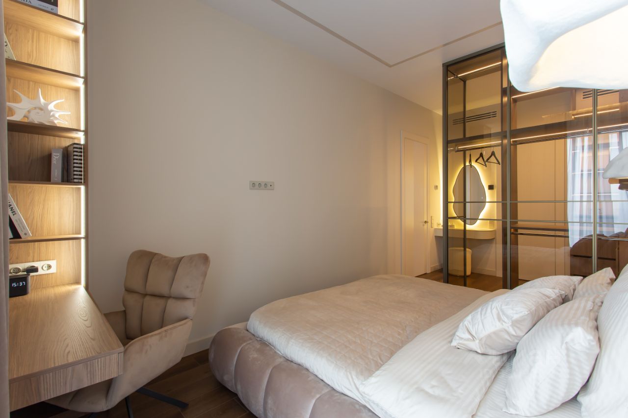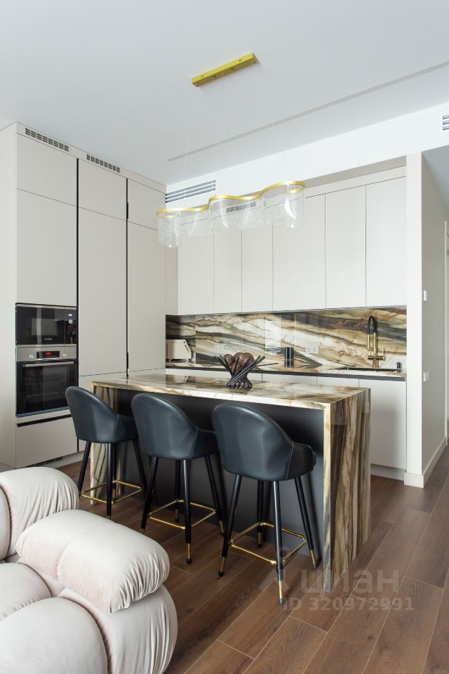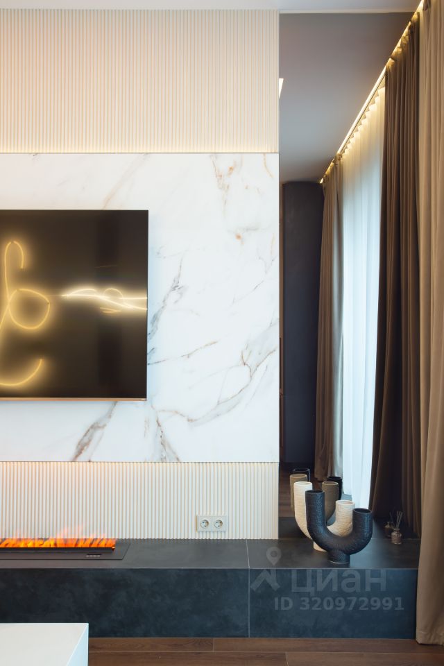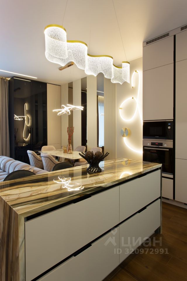Умный дом с Алисой, премиальная сантехника, дорогие и технологичные материалы в отделке, брендовая бытовая техника.
