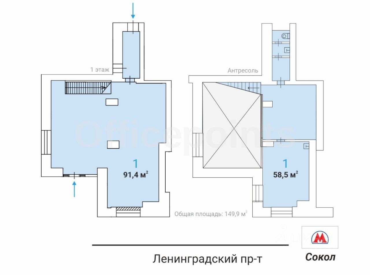 Сдается в аренду помещение свободного назначения на 1 этаже (с антресолью) в жилом доме С класса, который находится по адресу: Ленинградский пр-кт, д. 7Г.
