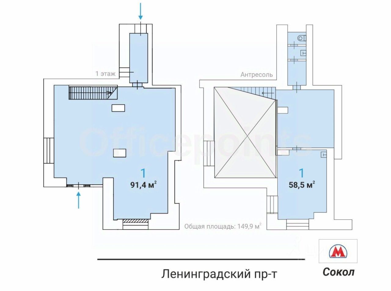 Продается помещение свободного назначения на 1 этаже (с антресолью) в жилом доме С класса, который находится по адресу: Ленинградский пр-кт, д. 7Г.