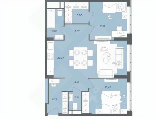 Предлагается Вашему вниманию 2х-комнатная квартира бизнес-класса, на 15-м этаже, в Жилом комплексе HEADLINER''. Виды на ''Москва Сити''. Квартира 84 м.: - 2 изолированные спальни, - просторная кухня-гостиная, - 2 совмещенных санузла.