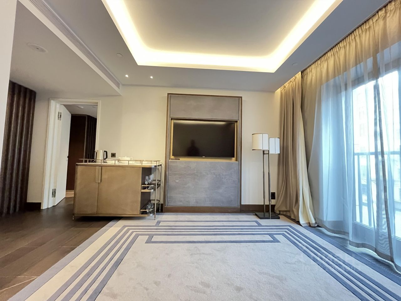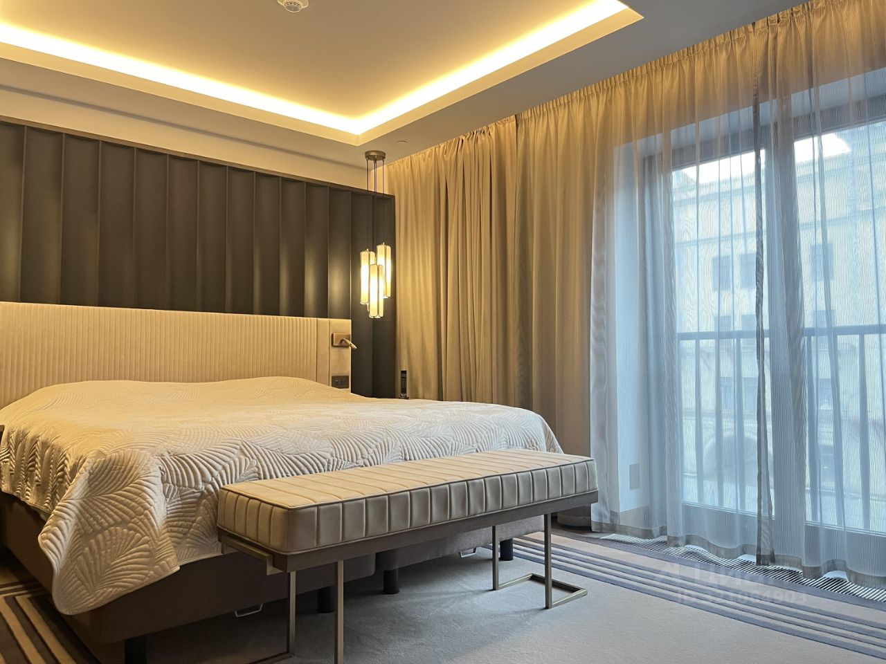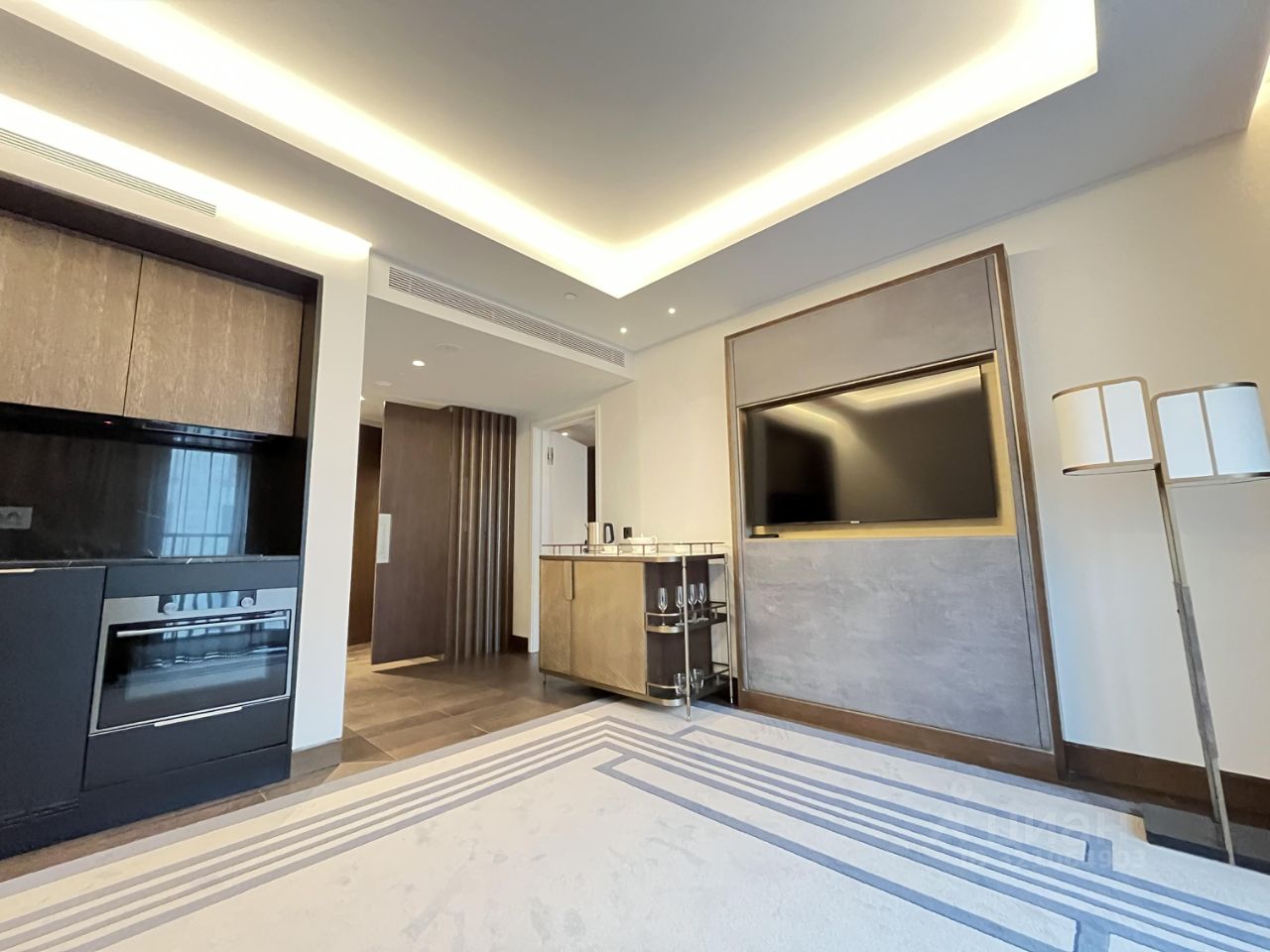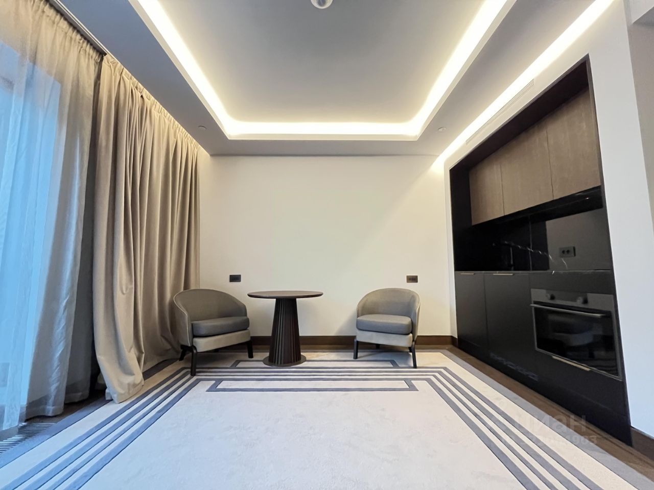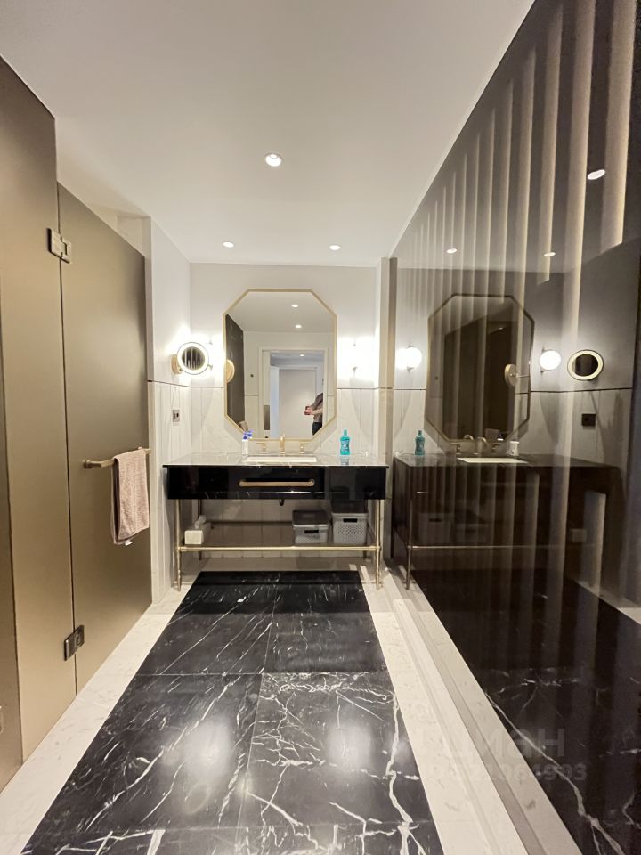 Апартамент с дизайнерским ремонтом, полностью готов к комфортному проживанию. На просторной кухне площадью 15 кв. м есть вся необходимая мебель и техника: холодильник, посудомоечная машина, кондиционер. В комнатах также имеется мебель, что делает переезд максимально удобным. В квартире два совмещенных санузла, один из которых оборудован душевой кабиной.