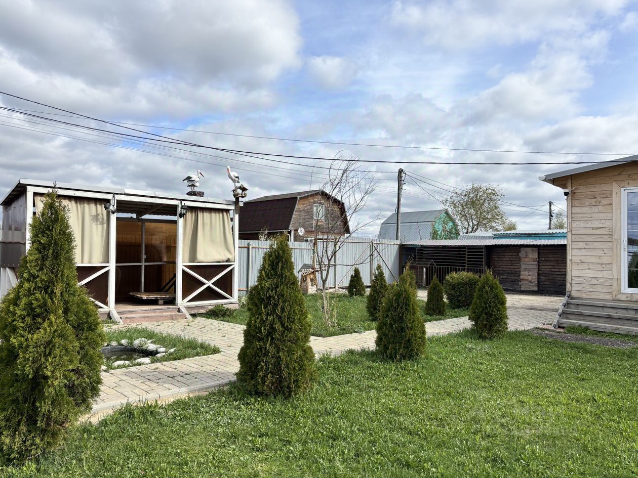 На участке расположена беседка, теплица, мангальная зона, качельки и декоративный пруд.