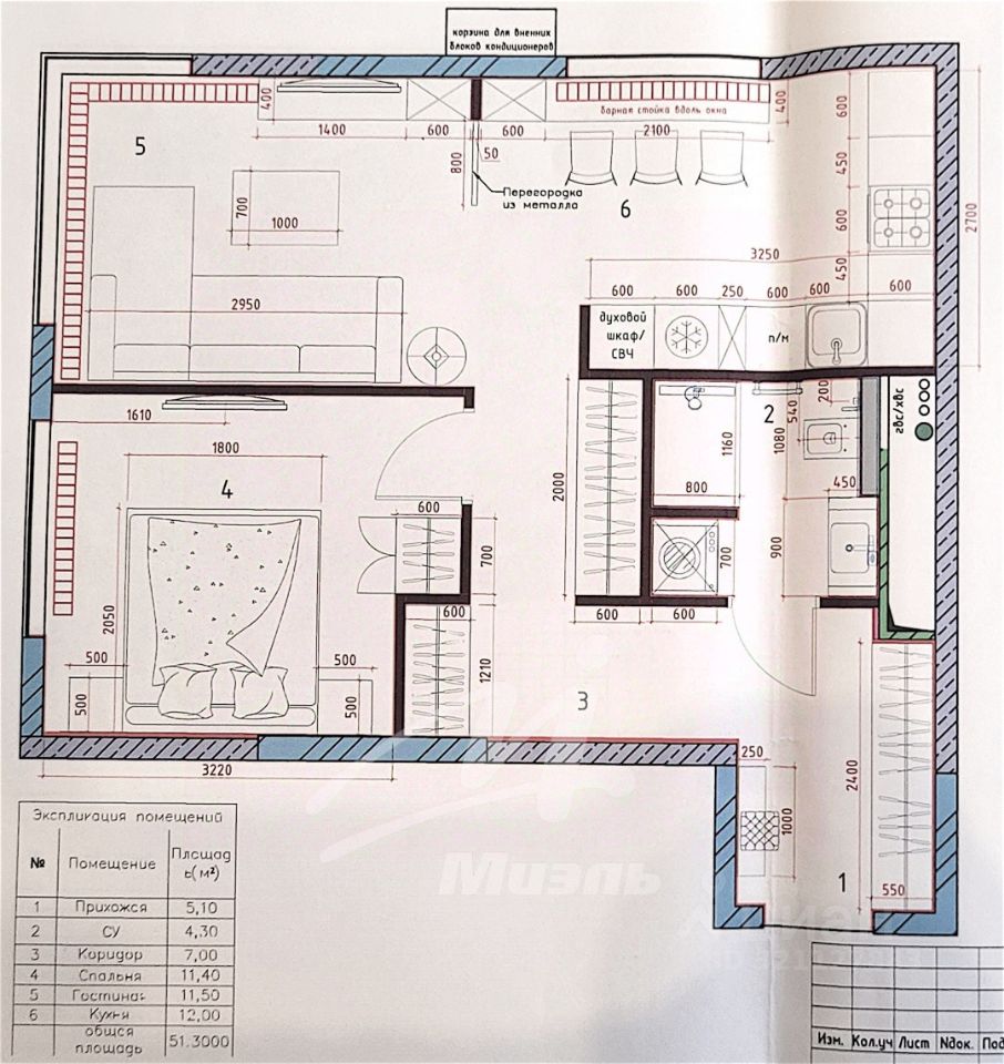 Общая площадь53,5 м2