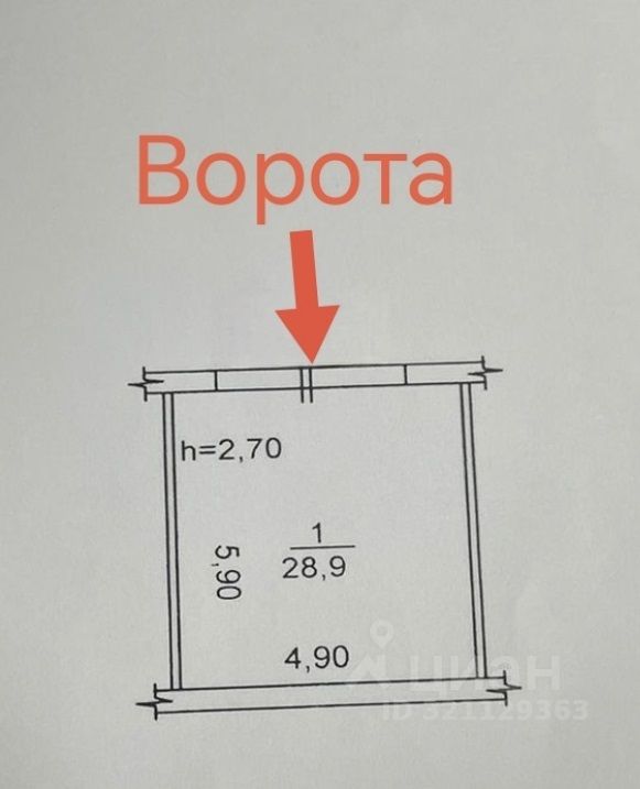 Гараж размер 28,9 кв.м (4,9*5,9*2,7), можно разместить две машины.