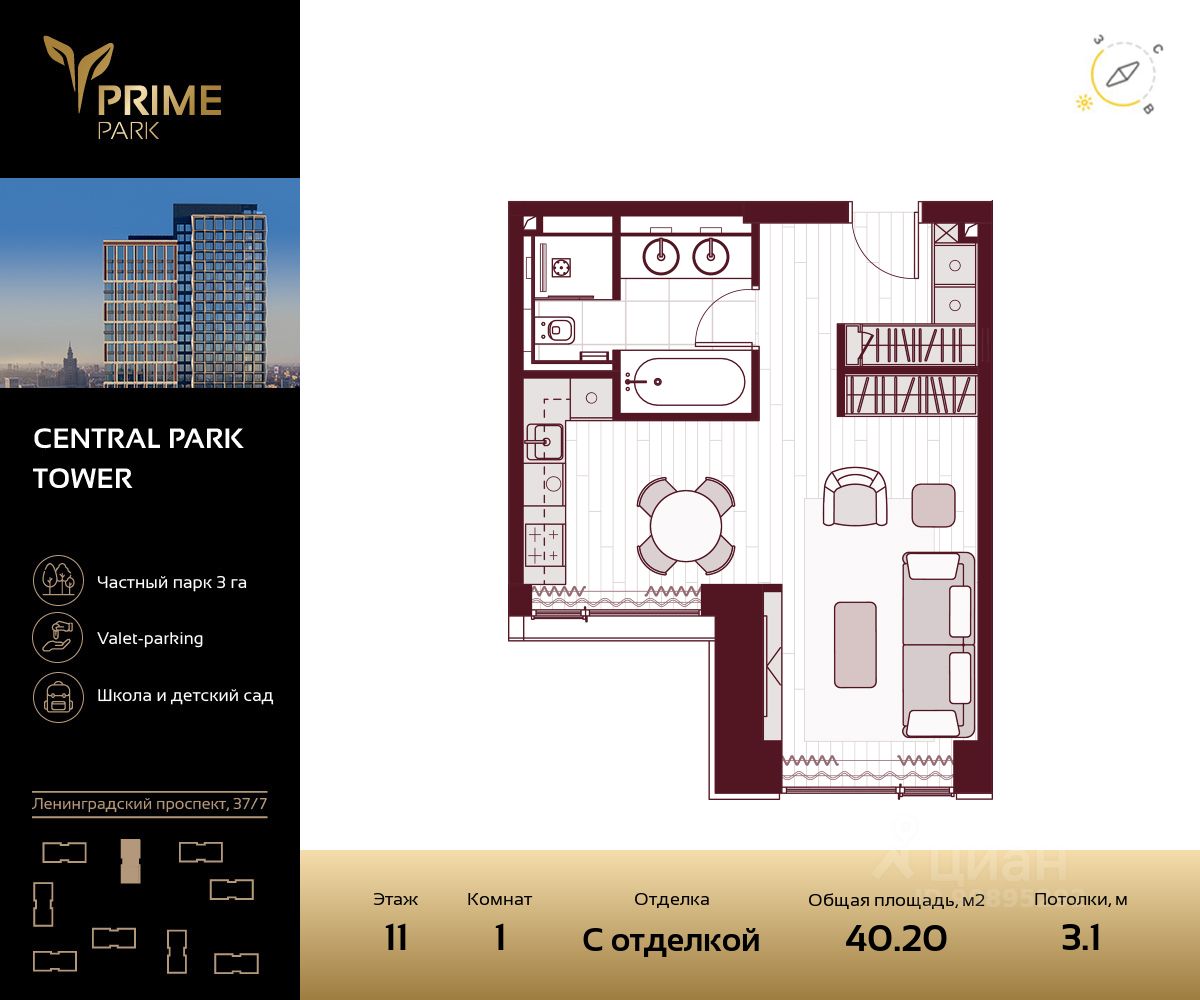 продам 1-к, Ленинградский проспект, 37/737 803 678 ₽