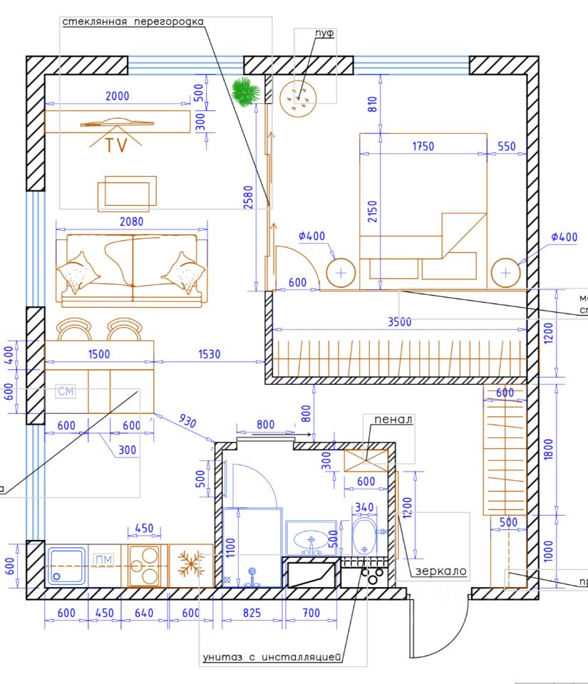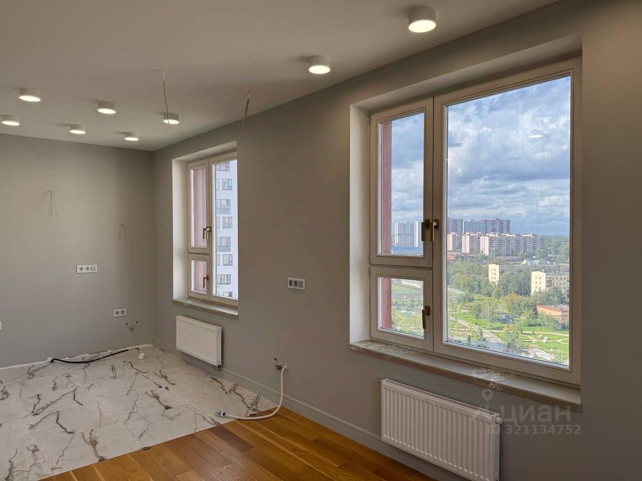 По планировке: одна изолированная комната с гардеробной, просторная кухня и гостиная, совмещенный санузел, холл коридора, большое количество окон, вид на две стороны - видно и лес и двор, панорама со всех сторон и как плюс шикарно светлая квартира!