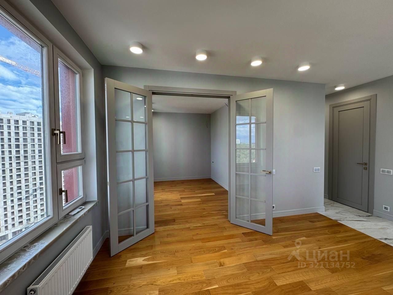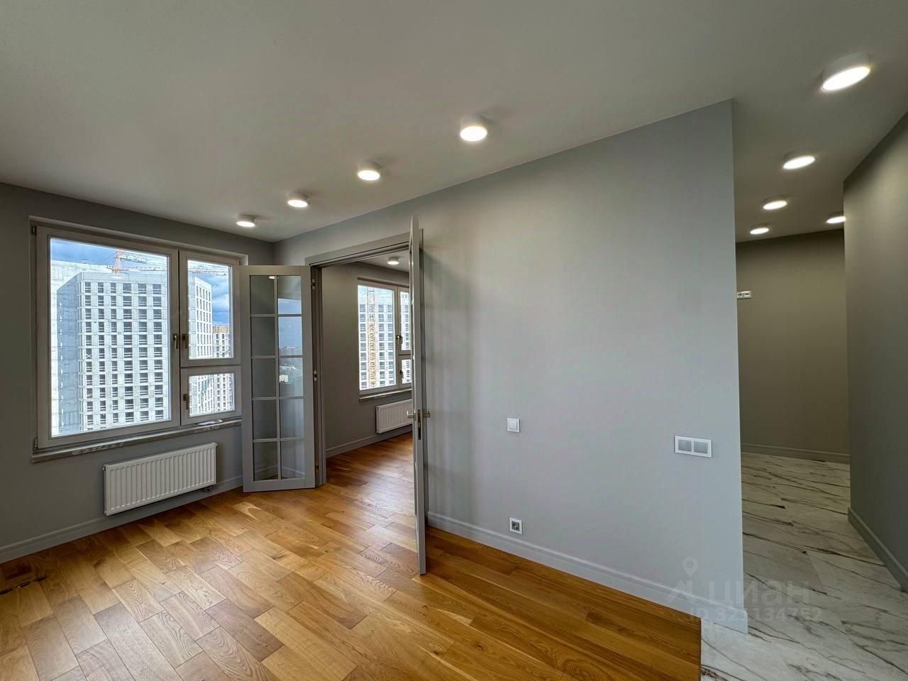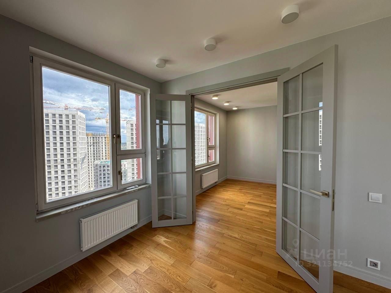 Продается просторная двухкомнатная квартира (евро) общей площадью 44,8 кв.м., расположенная в видовом 18 этаже 24 этажного монолитного дома. Вы получаете квартиру с дорогим и очень красивым современным ремонтом. Полы: дорогой Испанский керамогранит, инженерная доска (дерево), деревянные стеклопакеты на окнах, выкрашенные в стиль квартиры, подоконники из искусственного камня, предусмотрено место под кухонный остров, дорогая сантехника, стильная душевая. Все делалось с душой и для себя.