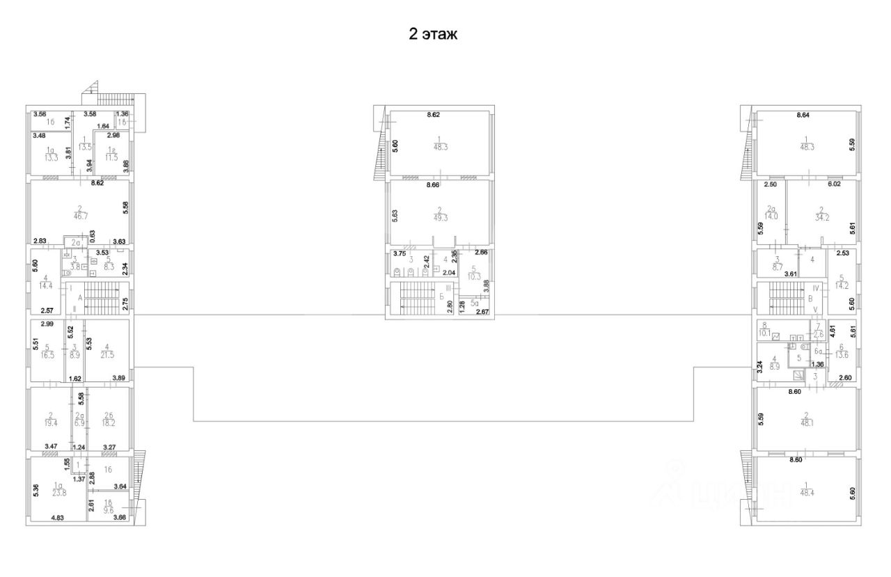Общая площадь : 2820 м² Наземная площадь : 1763 м² Наземная без лестниц : 1693 м²