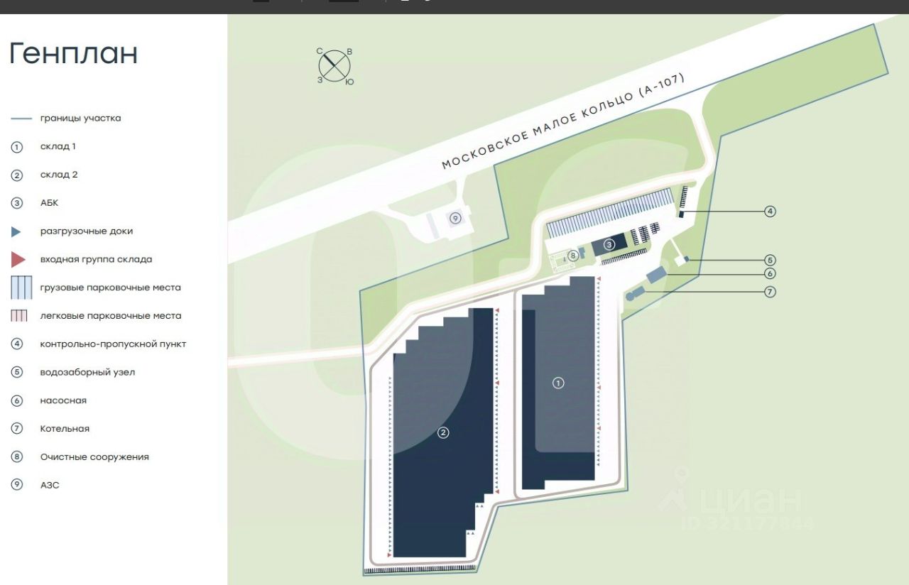 Технические характеристики: Нагрузка на пол: 8 т/кв. м Количество ворот: 8 шт. (Докового типа) Температурный режим: Отапливаемый склад Мощность: 573.62 кВт Высота потолка: 12.8 м Пол: Бетон-Антипыль Строится, доступ с 01.11.2026