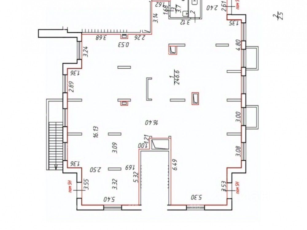 Технические характеристики: Помещение расположено в торце 1-го этажа жилого дома в жилом комплексе ''Стремление к свету'' ( 1250 выкупленных квартир тыс. жителей) площадью 254,0 м2. 3 отдельных входа со стеклянными дверями и окна по всему фасаду. Зальная планировка, состояние помещения - под отделку, высота потолков 3,5 метра. Электрическая мощность 35 кВт (возможно увеличение). Мокрая точка. Удобный подъезд автотранспорта к помещению с проезжей части т. к. оно расположено рядом с въездными воротами.