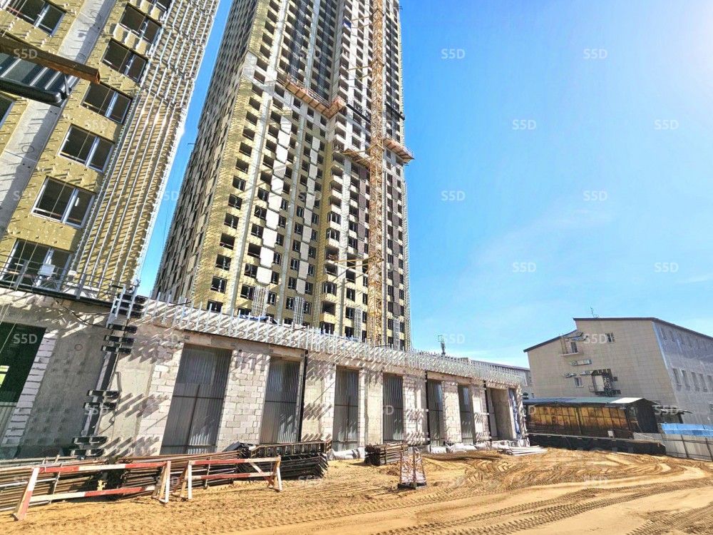 Технические характеристики: Общая площадь 1735.7 кв.м. 1 этаж 28-этажного жилого дома. Свой отдельный парадный вход с первой линии ЖК, 7 дополнительных входов со двора (территория со двора огорожена и закрыта), возможность доступа с внутренней жилой части комплекса жильцам. Витринное остекление, Открытая планировка. Выделенная мощность электроэнергии 434 кВт (0,25 кВт на 1 кв.м). 6 мокрых точек. Высота потолков 5.6 м.