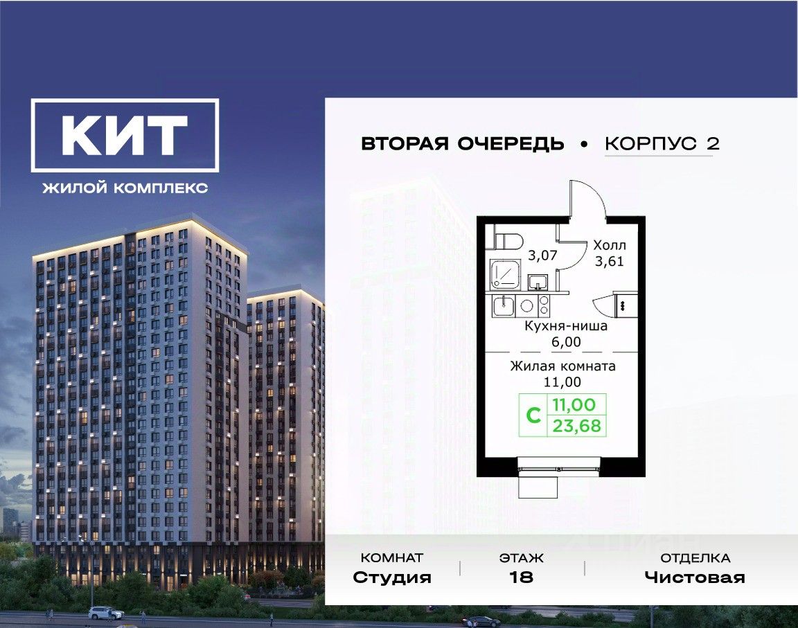 Общая площадь23,68 м2