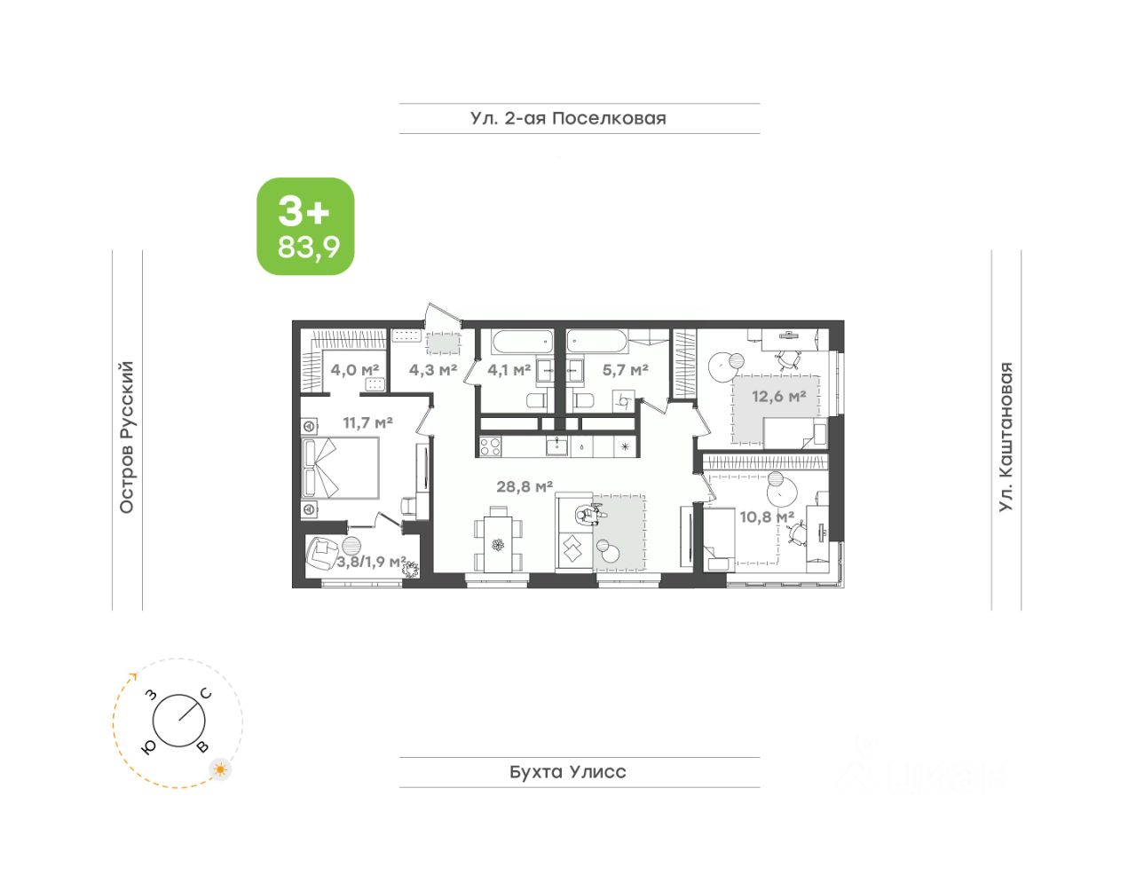 Кухня-столовая 28,8 кв.м станет настоящим сердцем квартиры, где можно готовить семейные завтраки и ужины, а также проводить время в кругу близких людей