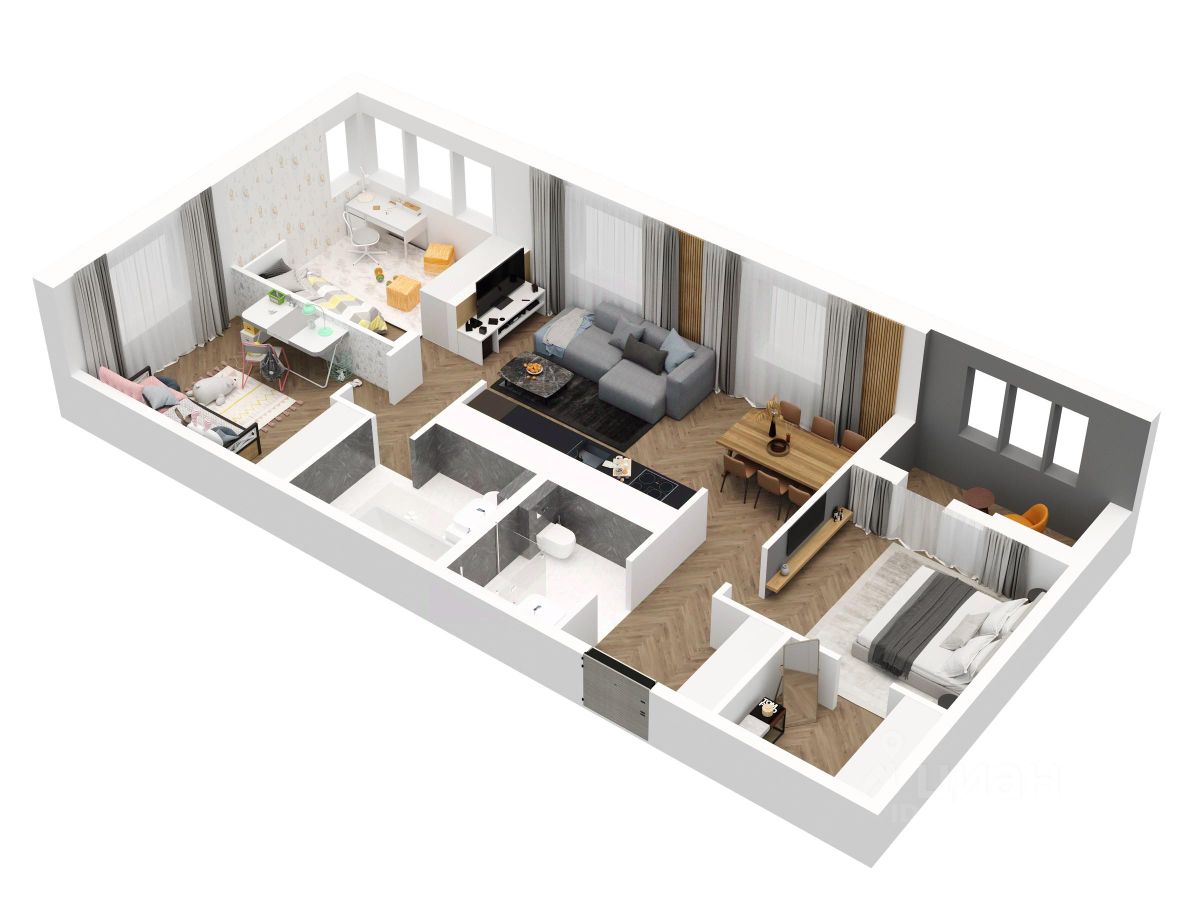 Две детские комнаты 12,6 кв.м и 10,8 кв.м обеспечат комфорт для развития и игр вашим детям