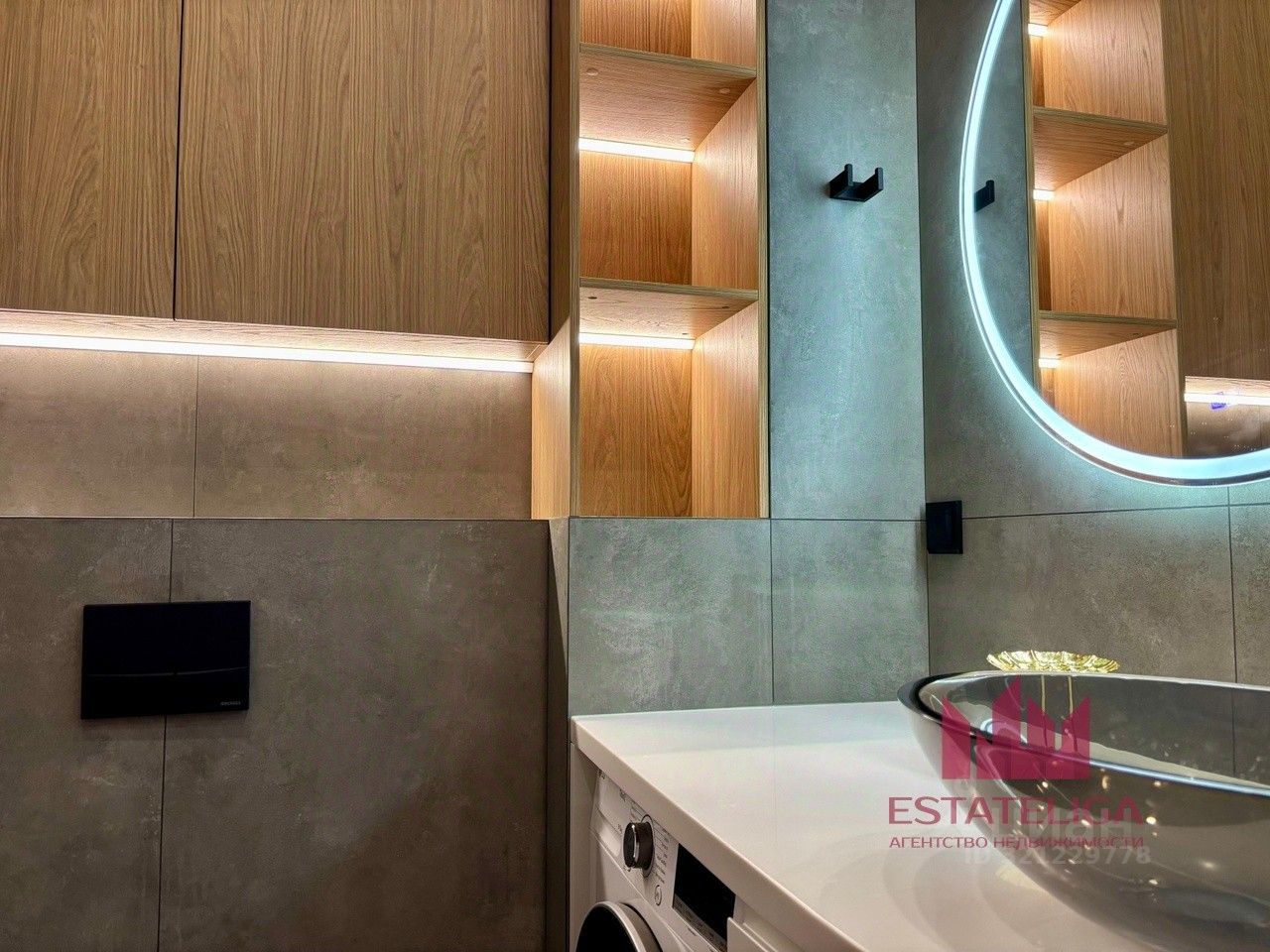 Санузел и кухонная зона оснащены полным комплектом техники и системой теплого пола: все уже готово для комфортного проживания будущего хозяина