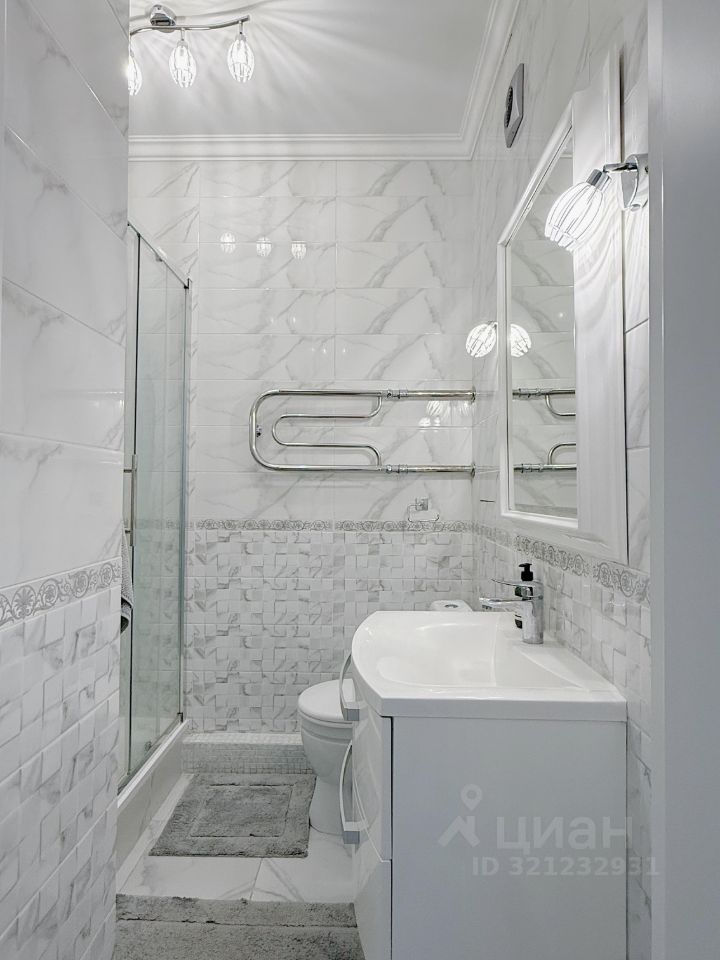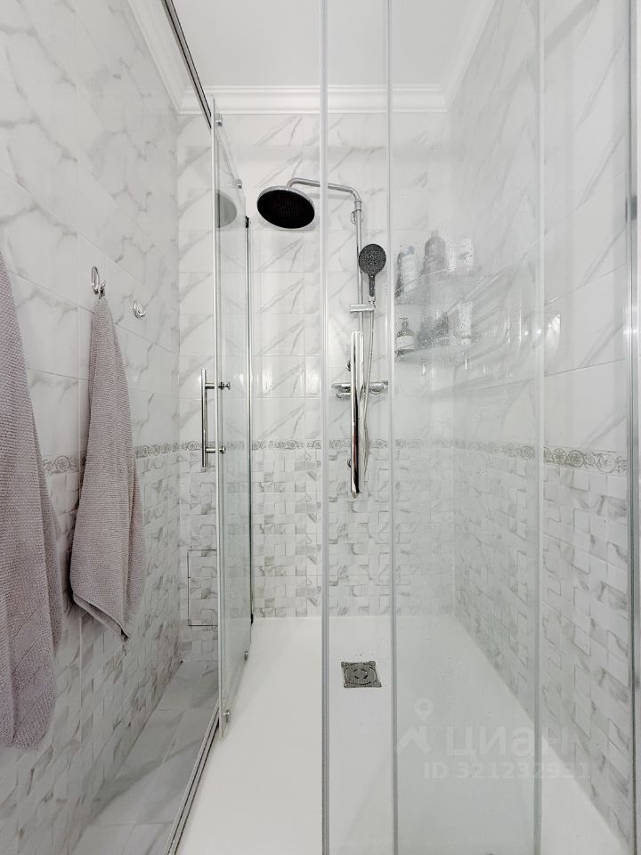 Санузел с душевой кабиной, имеется стиральная машина.