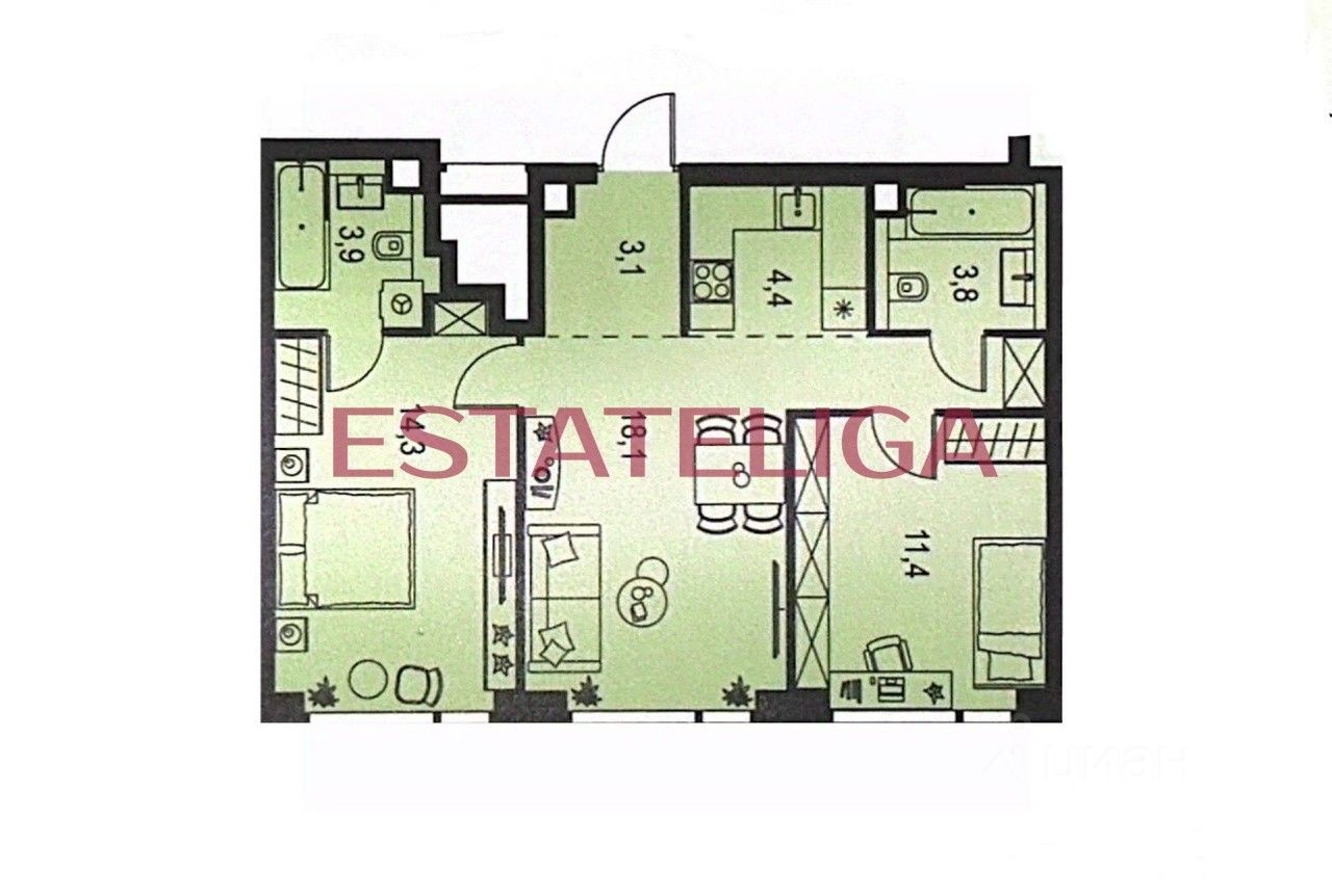 О квартире: Свободная планировка, включает в себя: кухню и гостиную, которую можно совместить и получится большая зона отдыха для всей семьи. 1 изолированная комната - детская или кабинет, изолированная мастер - спальня с санузлом и 1 гостевой санузел при входе в квартиру.