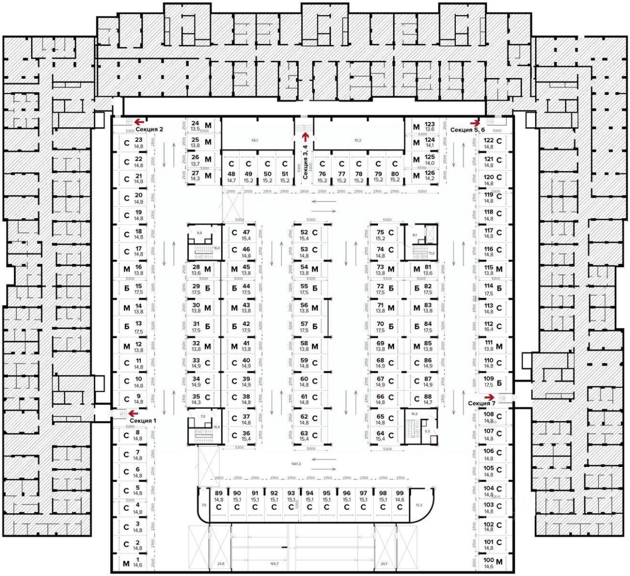 Машиноместо номер 51 общей площадью 15.2 кв. м на -1-м этаже в ЖК ''1-й Лермонтовский''.