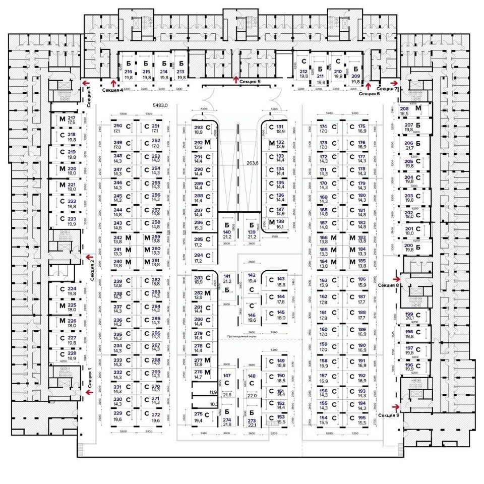 Машиноместо номер м/м148 общей площадью 22 кв. м на -2-м этаже в ЖК ''1-й Лермонтовский''.