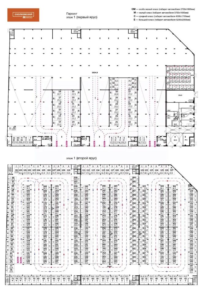 Машиноместо номер 285 общей площадью 14.7 кв. м на 1-м этаже в ЖК ''Сколковский''.