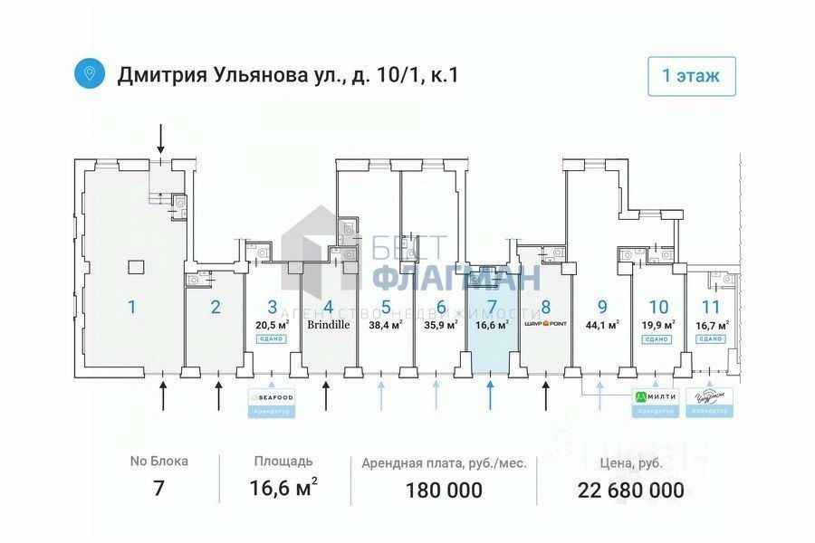 Арт. 115168689 Прямая аренда от собственника! Сдается помещение свободного назначения, 16,6 м² Москва, ул. Дмитрия Ульянова, 10/1 К1 Площадь: 16,6 м². Этаж: 1 из 4 Помещение: Свободно.