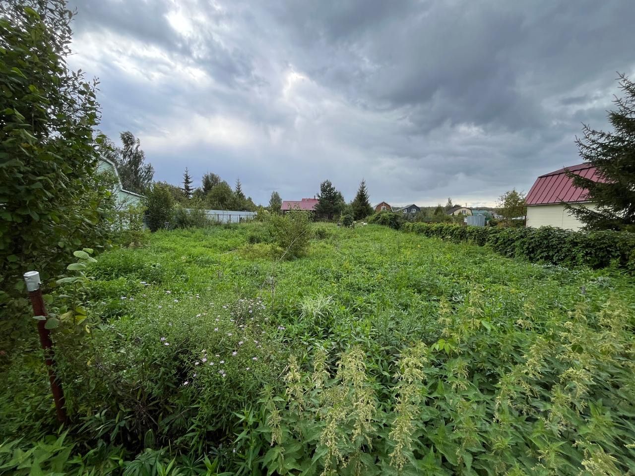 Участок ровный, правильной формы, огорожен забором, есть колодец. Все соседи построились.