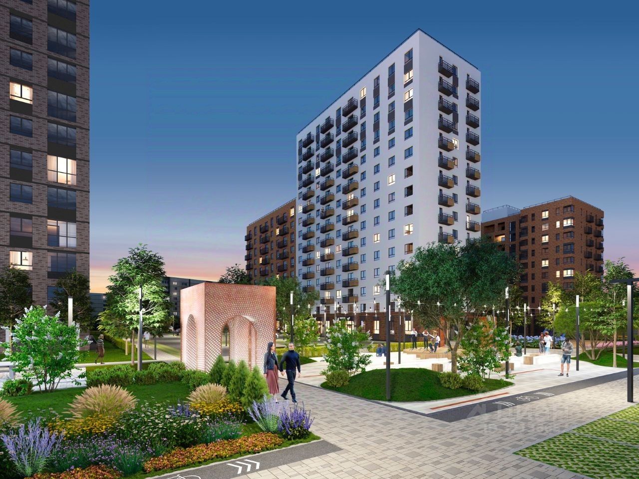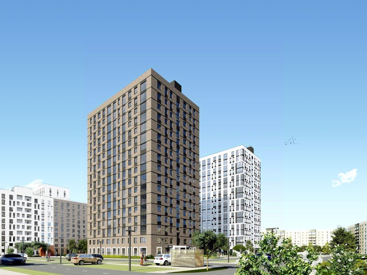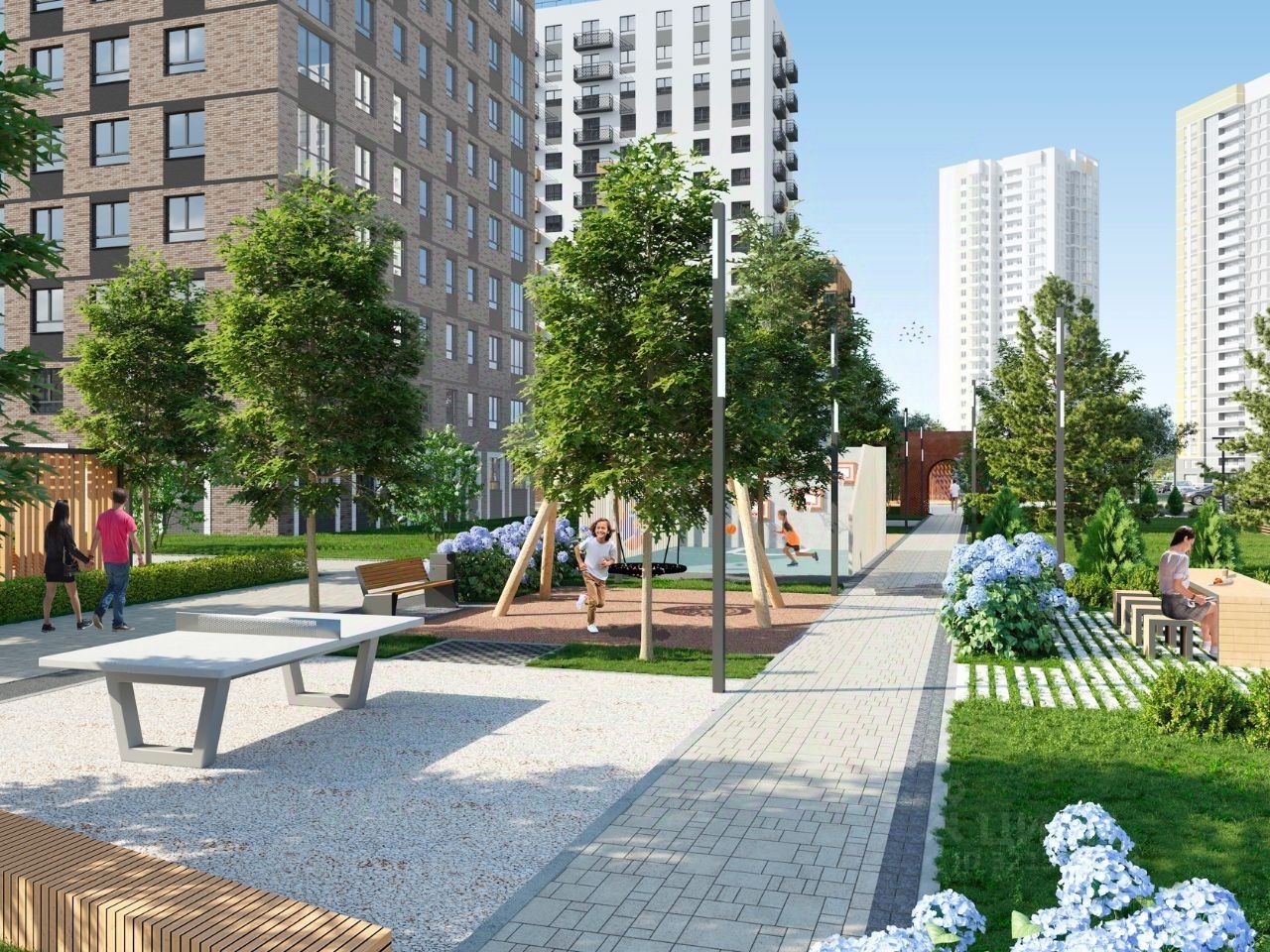 В проекте жилого комплекса мы предусмотрели большое количество детских и спортивных площадок, зеленую аллею для прогулок с элементами ландшафтного дизайна, широкие дворовые проезды, новый, расширенный пакет системы ''Умный дом''.