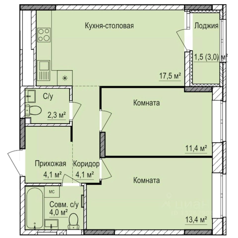 Общая площадь58,3 м2