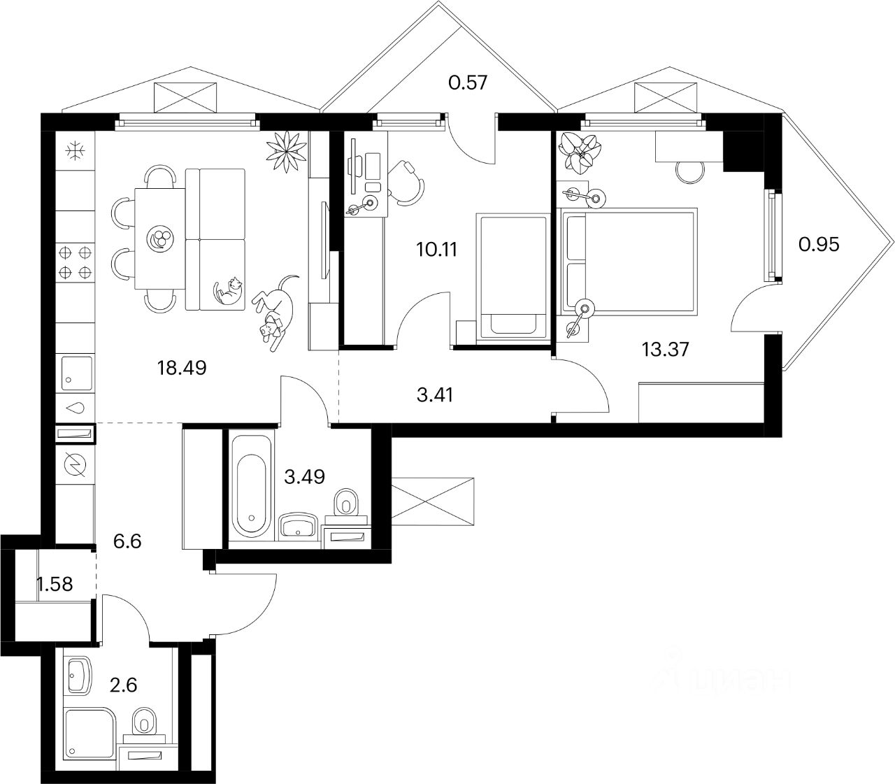 В ''Бусиновском парке'' предусмотрены квартиры с панорамным остеклением, различными балконами, эркерами, угловыми окнами и большим количеством окон — до пяти в одной комнате. В таких квартирах широкий угол обзора: можно пить кофе, наблюдая за жизнью на улице и наслаждаясь ощущением простора. Ещё больше комфорта придаст мягкий солнечный свет, который равномерно осветит всю квартиру. Артикул 947621 (Зас